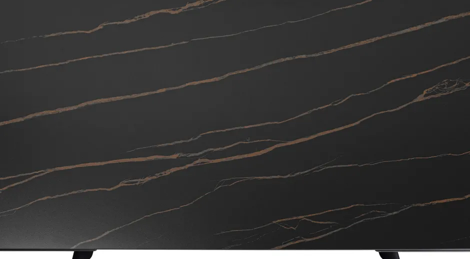 - Lackierte Tischplatte aus Steinzeug (12mm stark) in Schwarz mit dezenter heller Maserung