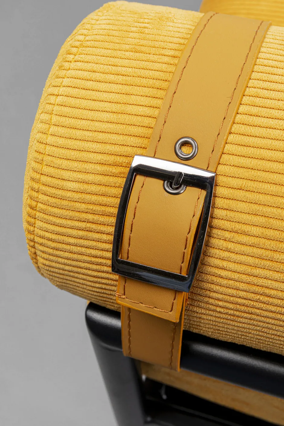 - Eine optische Delikatesse sind die beiden Rollen als Armlehnen, die mit Gurten am Gestell fixiert sind