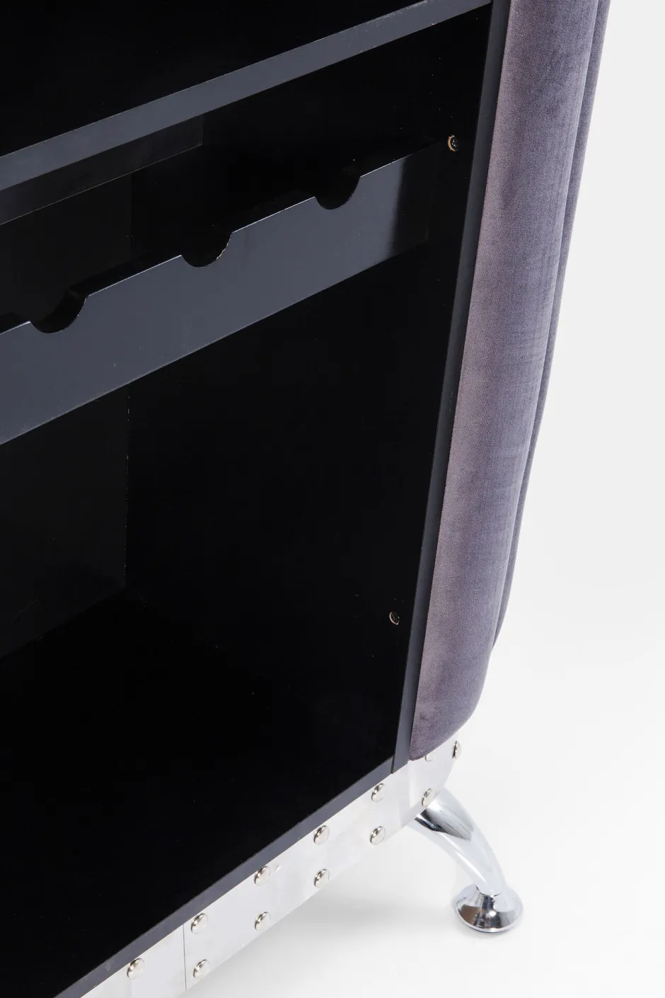 - Besonders edel ist der Material-Mix: Chrom, Samt und gefärbtes Glas