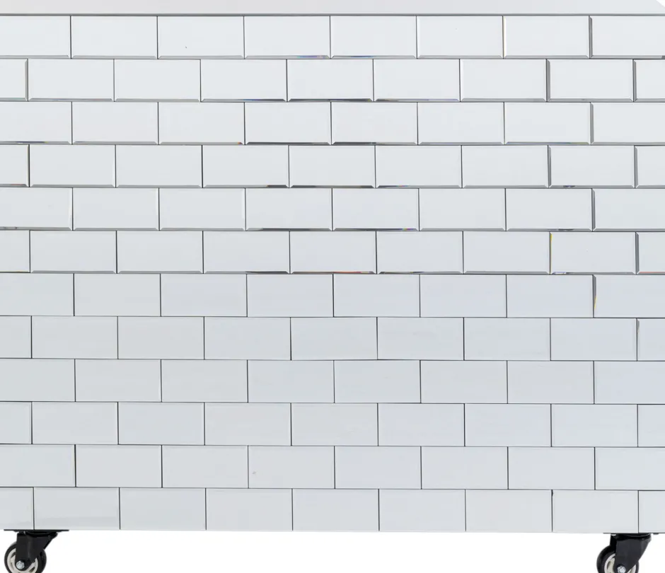 - Front und Seitenteile der Hausbar sind komplett mit facettierten Spiegelkacheln verkleidet