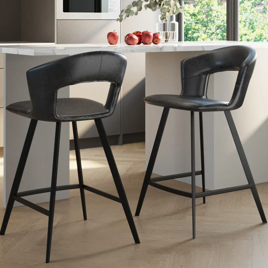 - Bequem gepolsterter Barhocker in schwungvollem Retrodesign – ganz in Schwarz