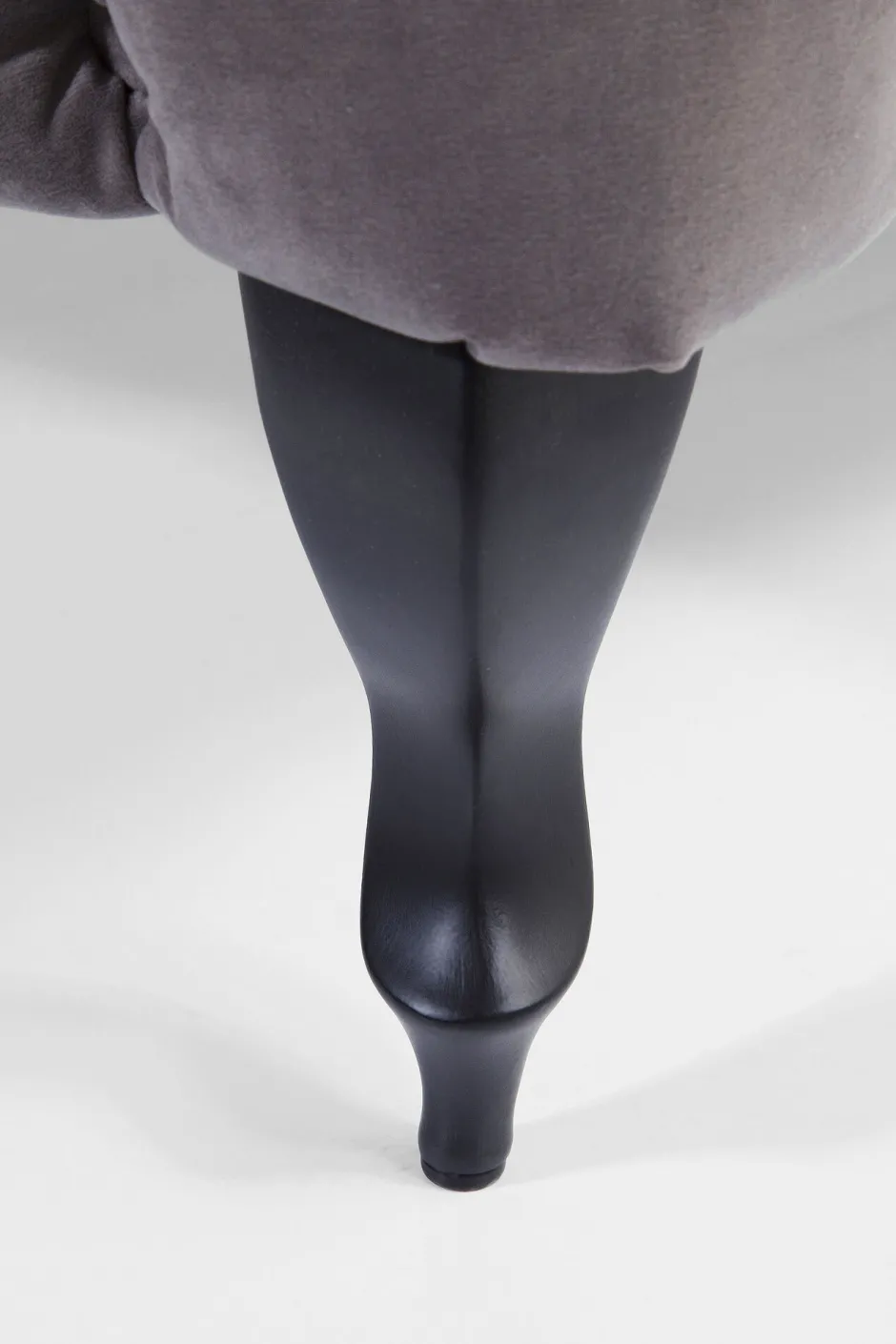 - Luxuriöses, silbergraues Polsterbett mit einem Samtbezug, umlaufender Kapitonierung und schwarzen Beinen aus Buchen-Massivholz