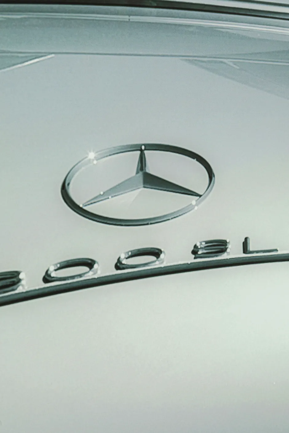 - Spektakuläres dreiteiliges Glasbild im XXL-Format mit der Heckansicht eines Mercedes-Oldtimers