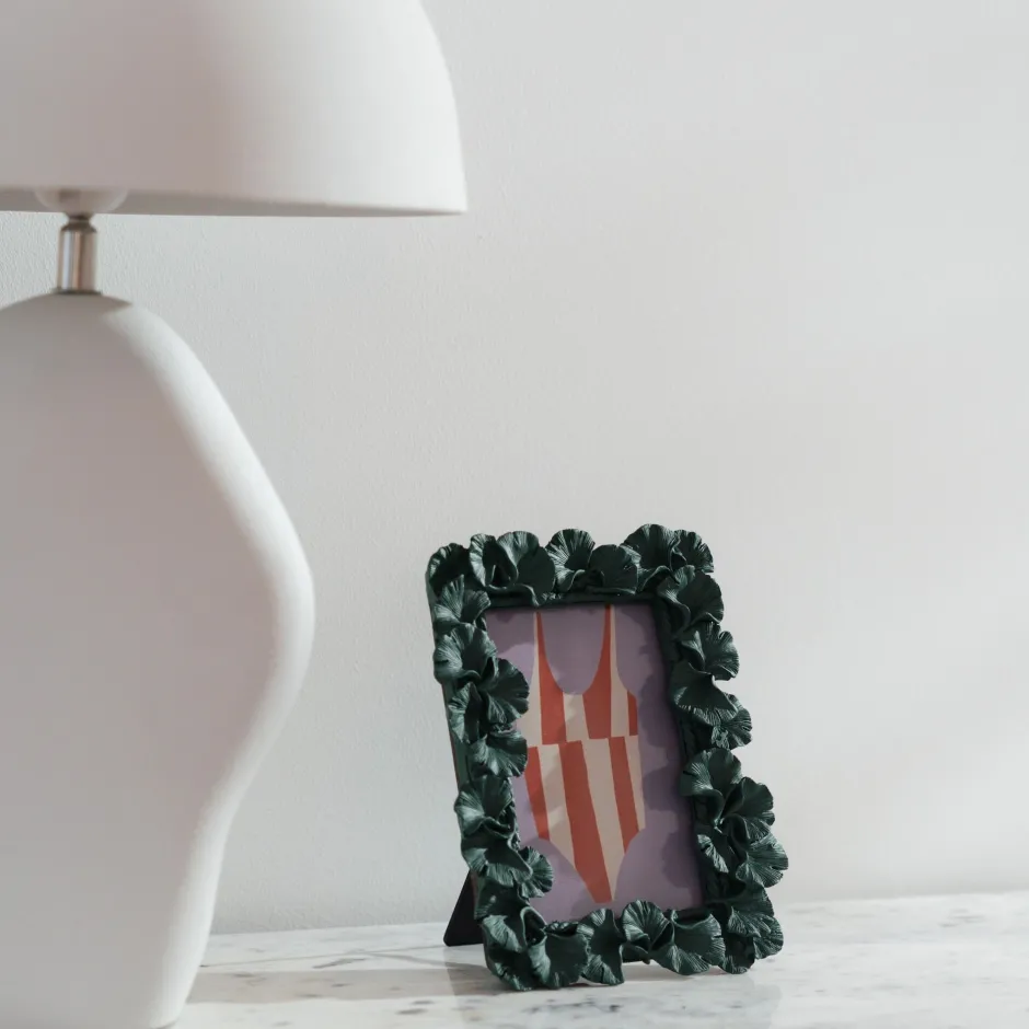 - Der Rahmen überzeugt mit seiner originellen Umrandung aus stilisierten Ginkgo-Blättern in gedecktem Grün
