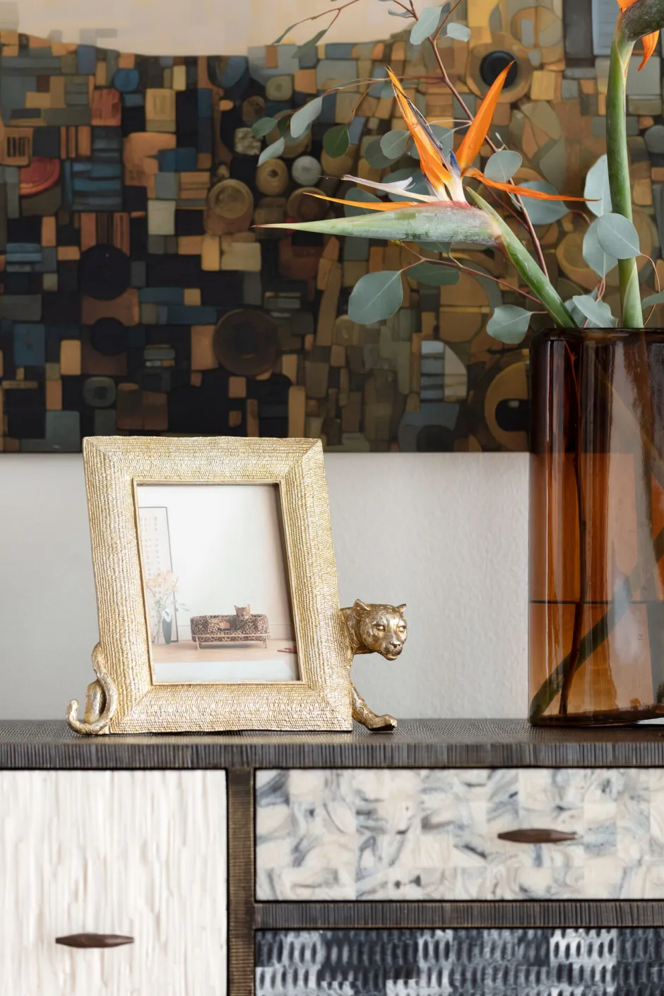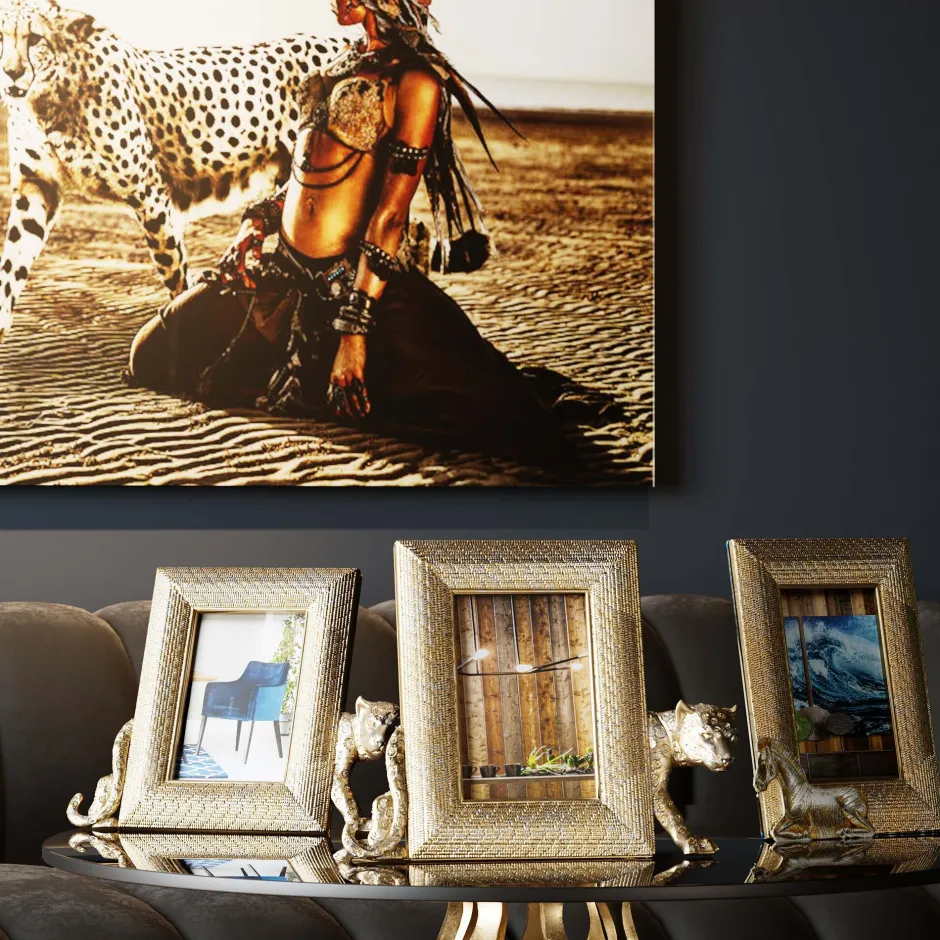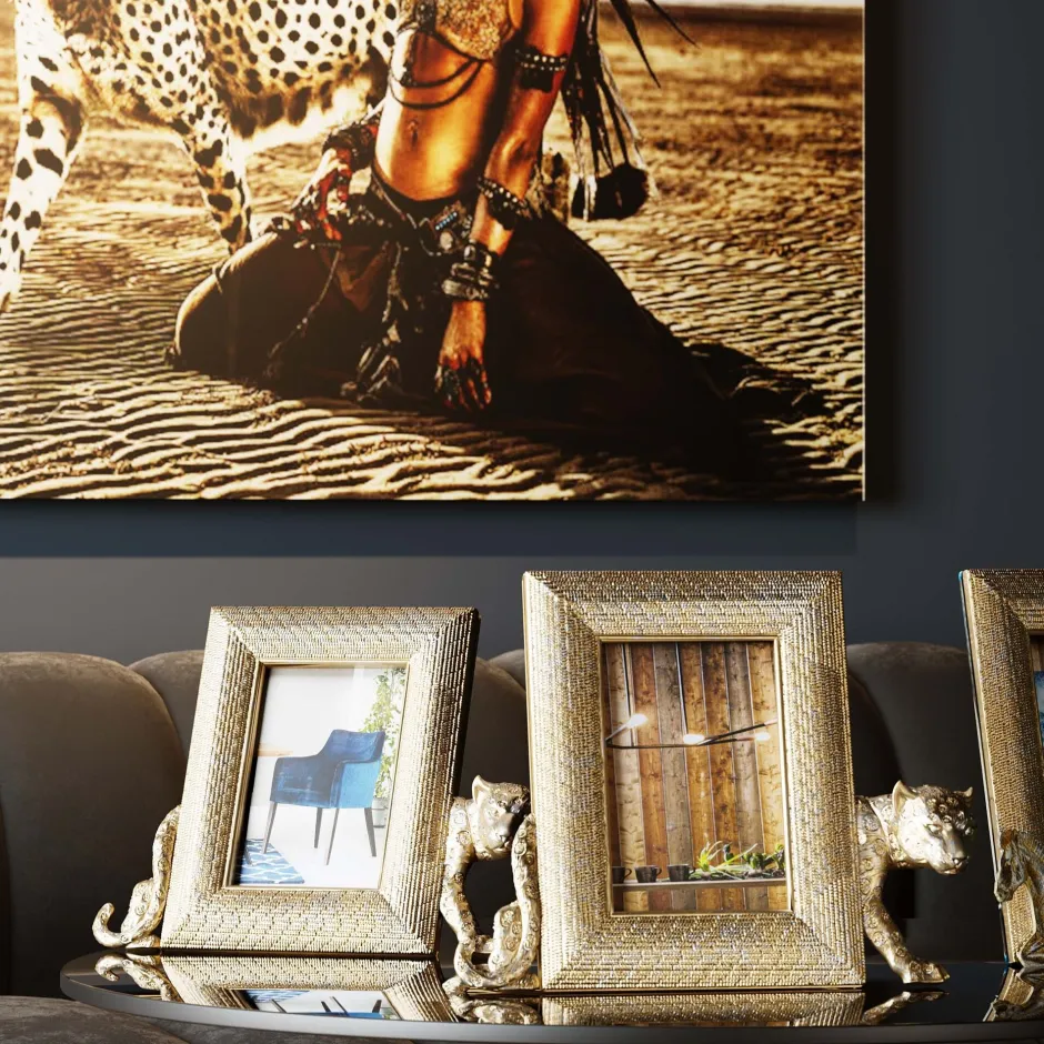- Glänzender Bilderrahmen mit Leopard in Gold und Silber, 25 x 28.5 x 4.5 Zentimeter (H/B/T)