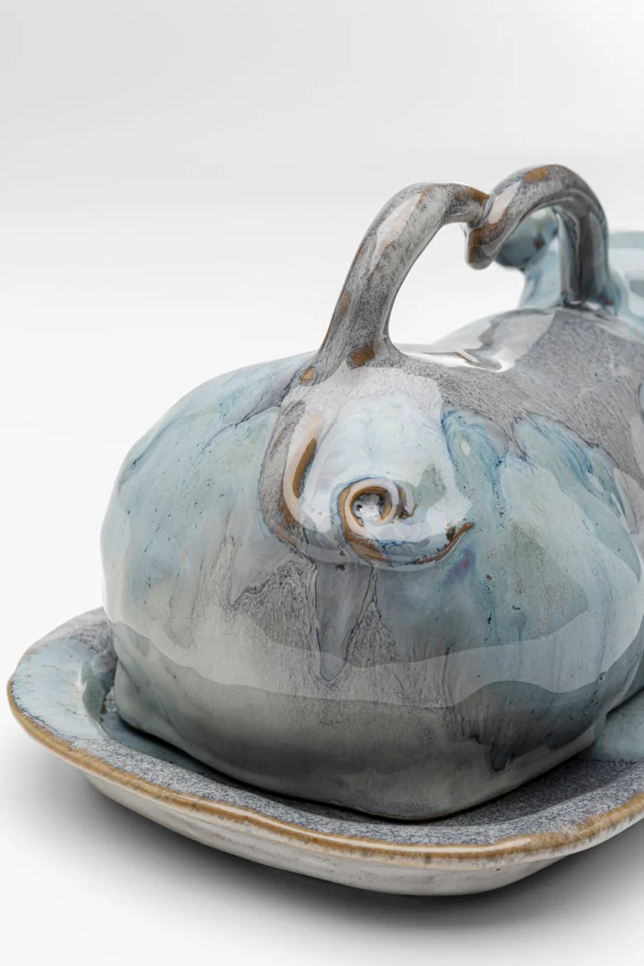- Ausgefallene Butterdose aus Porzellan in Blau und Braun, 12.5 x 22.5 x 15.5 Zentimeter (H/B/T)