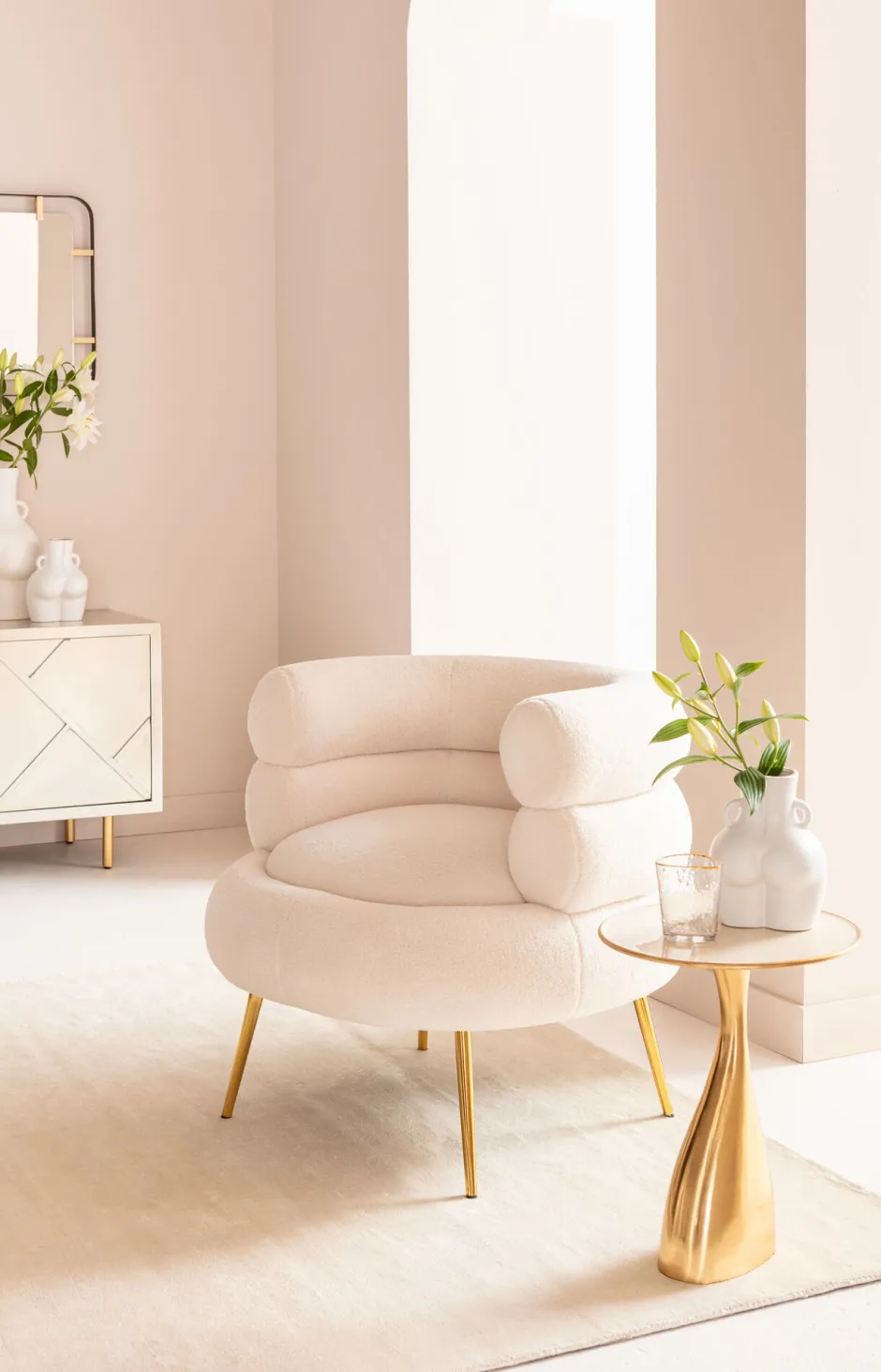 - Als Solitär mit Glamour-Faktor können Sie mit diesem Sessel in Creme eine stilvollen Platz zum Lesen oder Fernsehen schaffen