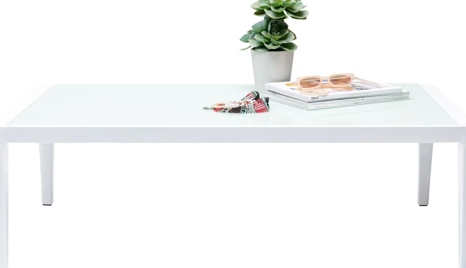 - Rechteckiger, niedriger Gartentisch in Weiß
