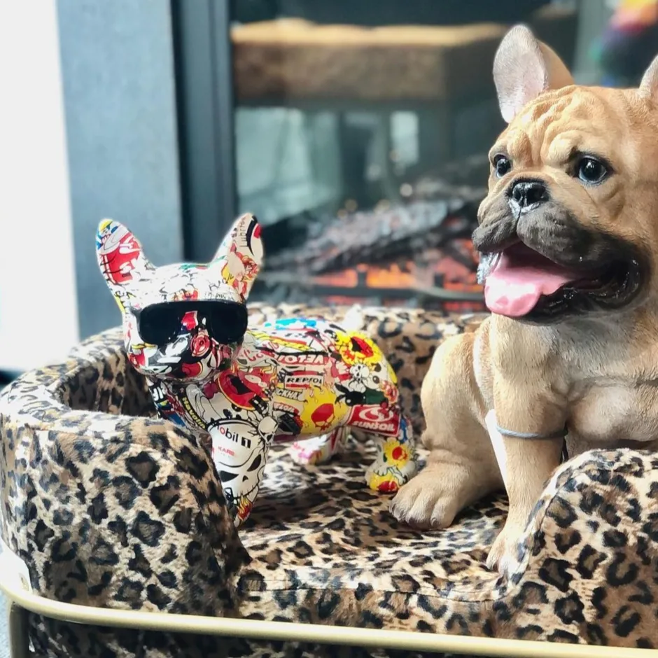 - Bunter Hund: Dekofigur aus Kunststein mit farbenfrohem Dekor im Comic-Stil