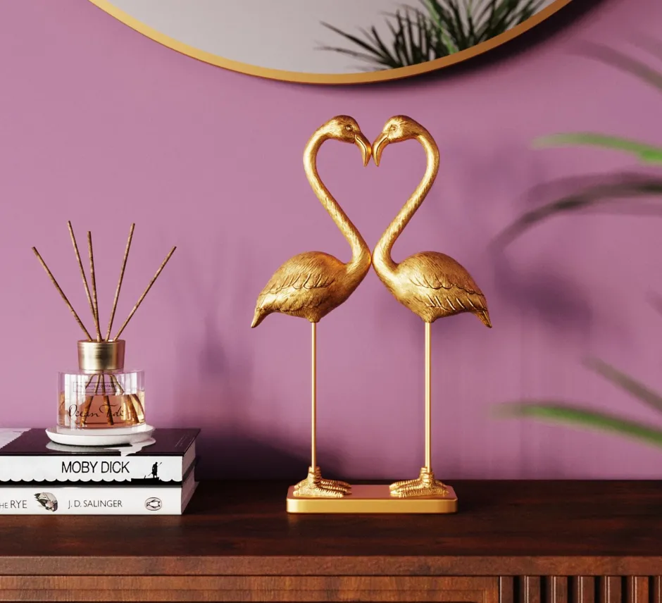 - Charmantes Dekoobjekt mit Flamingos und Herz