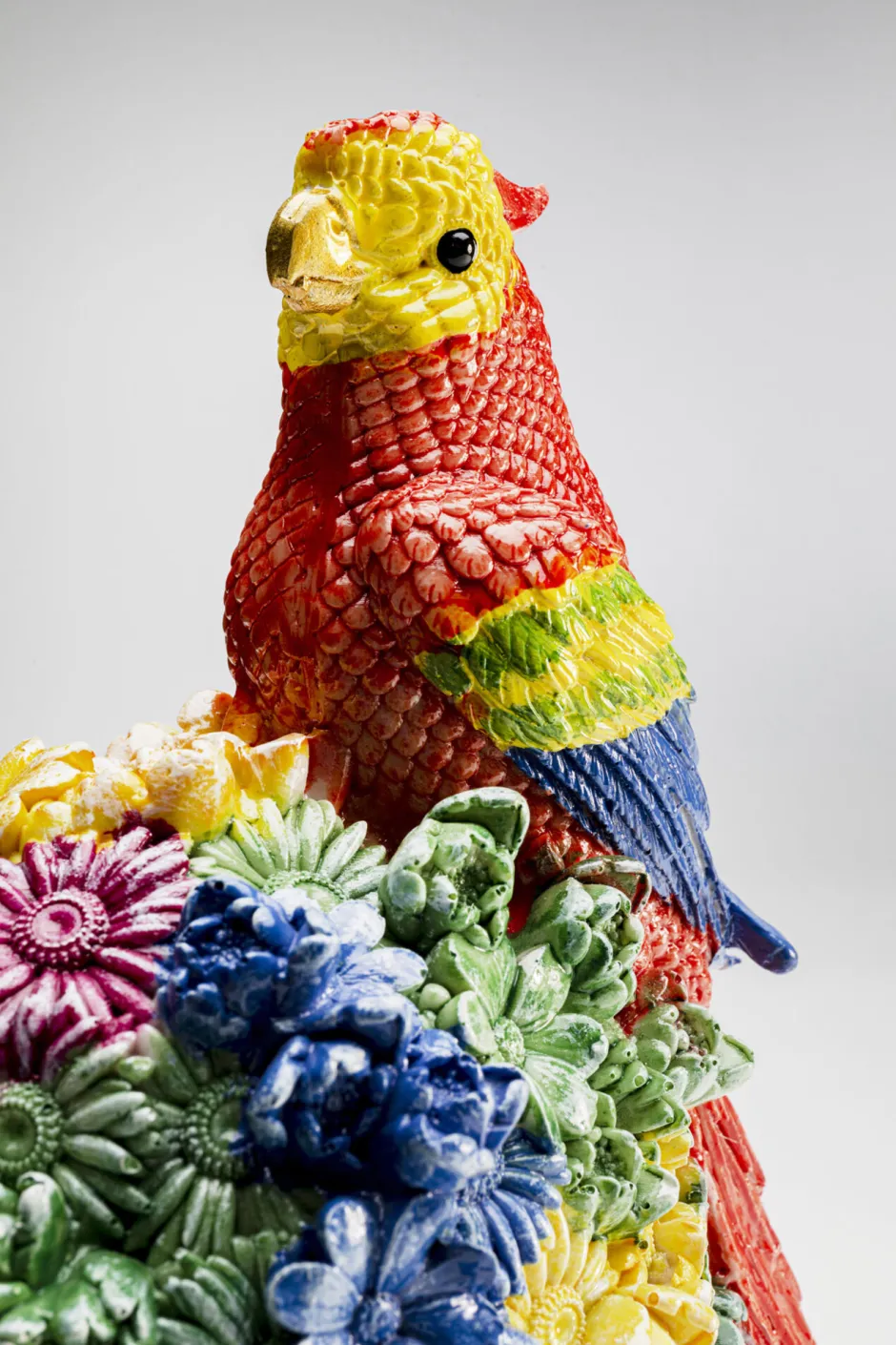 - Bunter Deko-Kopf mit Blumen und Papagei, 50 x 29 x 22 Zentimeter (H/B/T)