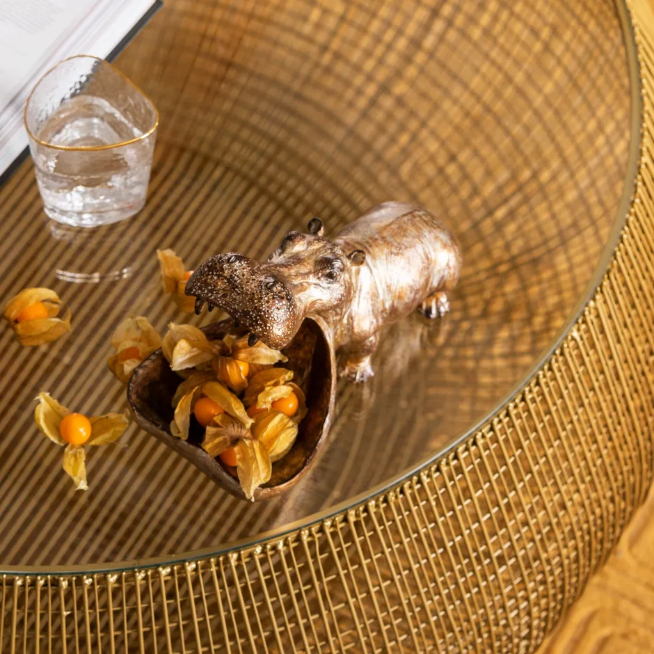 - Deko mit Mehrwert: Das goldige Nilpferd dient mit seinem großen Maul als Schale