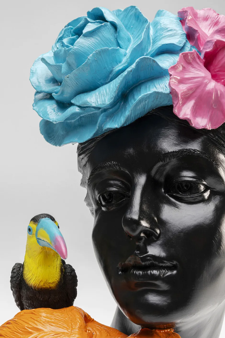 - Mit tierischen Begleitern auf der Schulter und einer Blüten-Krone versprüht die Figur tropisches Flair