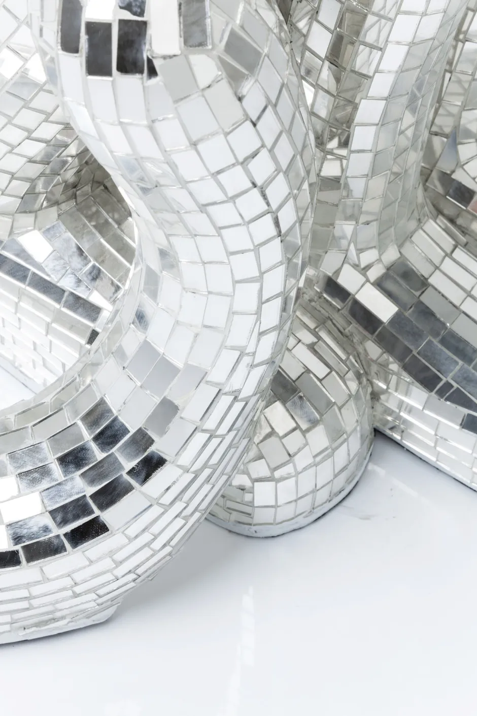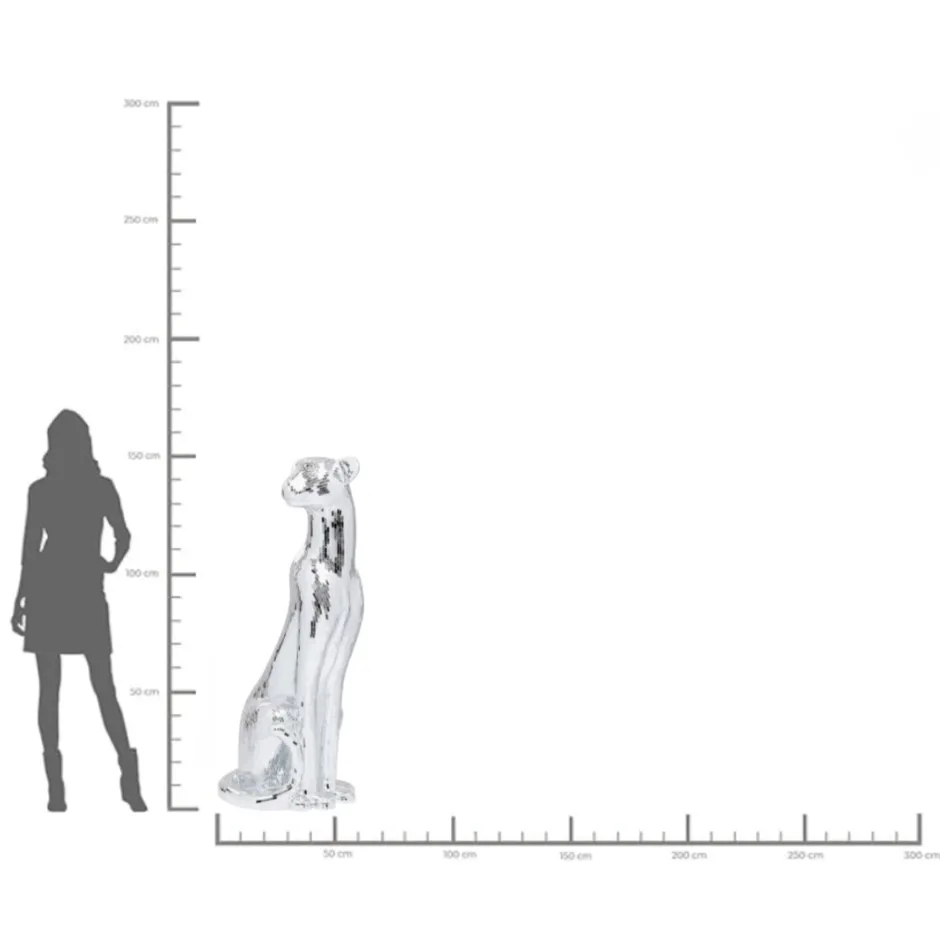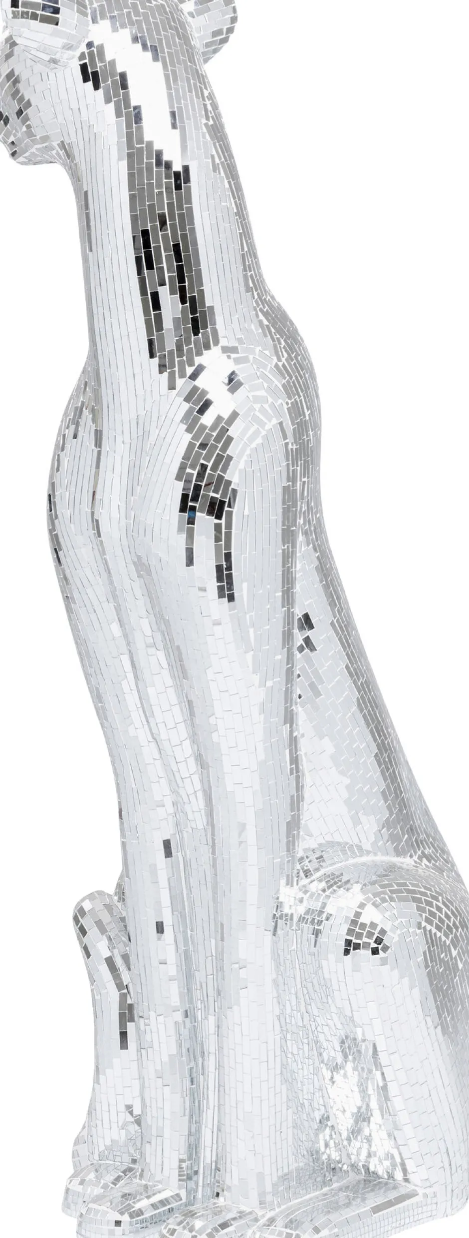 - Die silberne Raubkatze bringt mit ihrer Oberfläche aus Spiegelmosaik Glamour ins Wohnzimmer