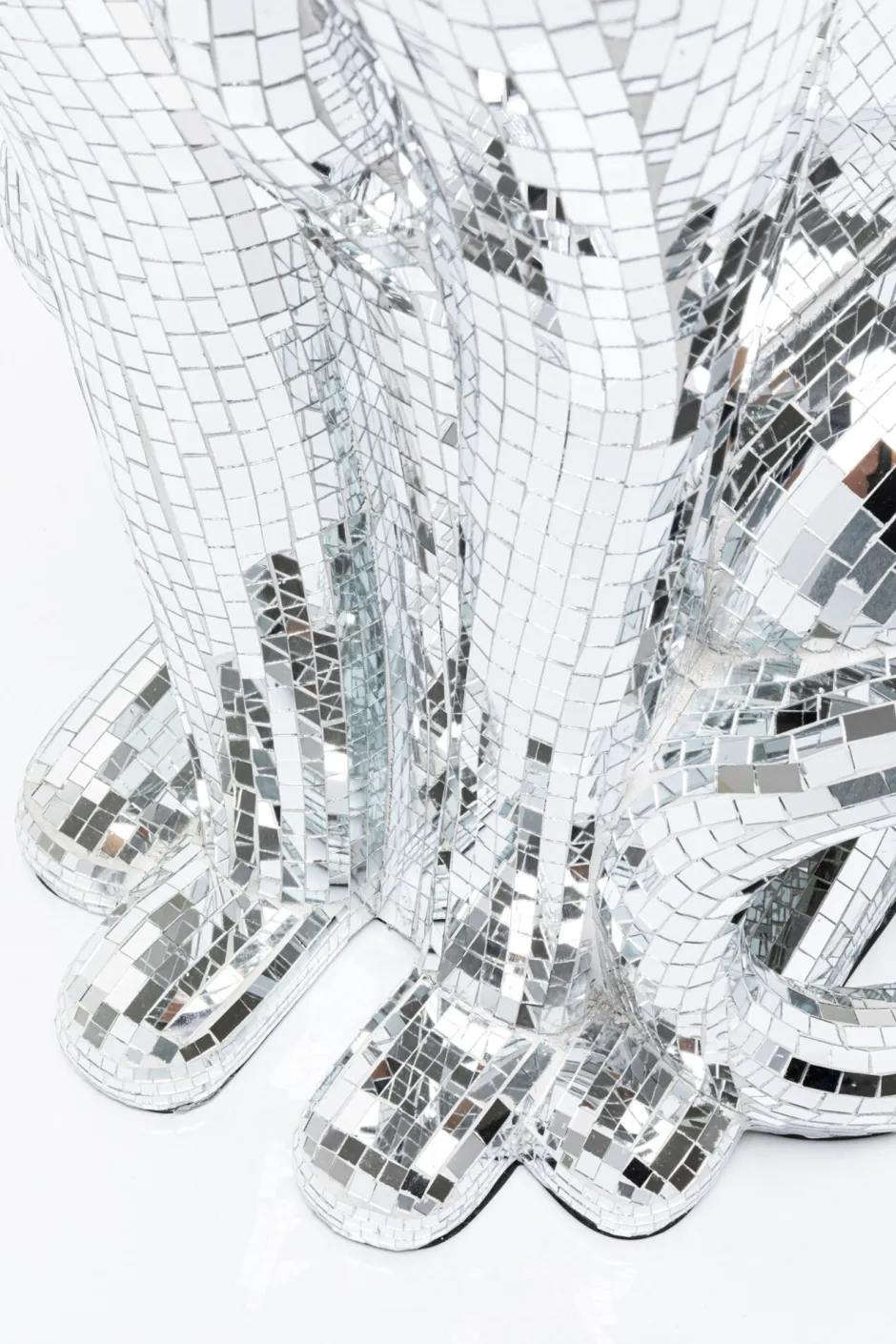 - Große Dekofigur Panther mit silbernem Mosaik, 150 x 68 x 50 Zentimeter (H/B/T)