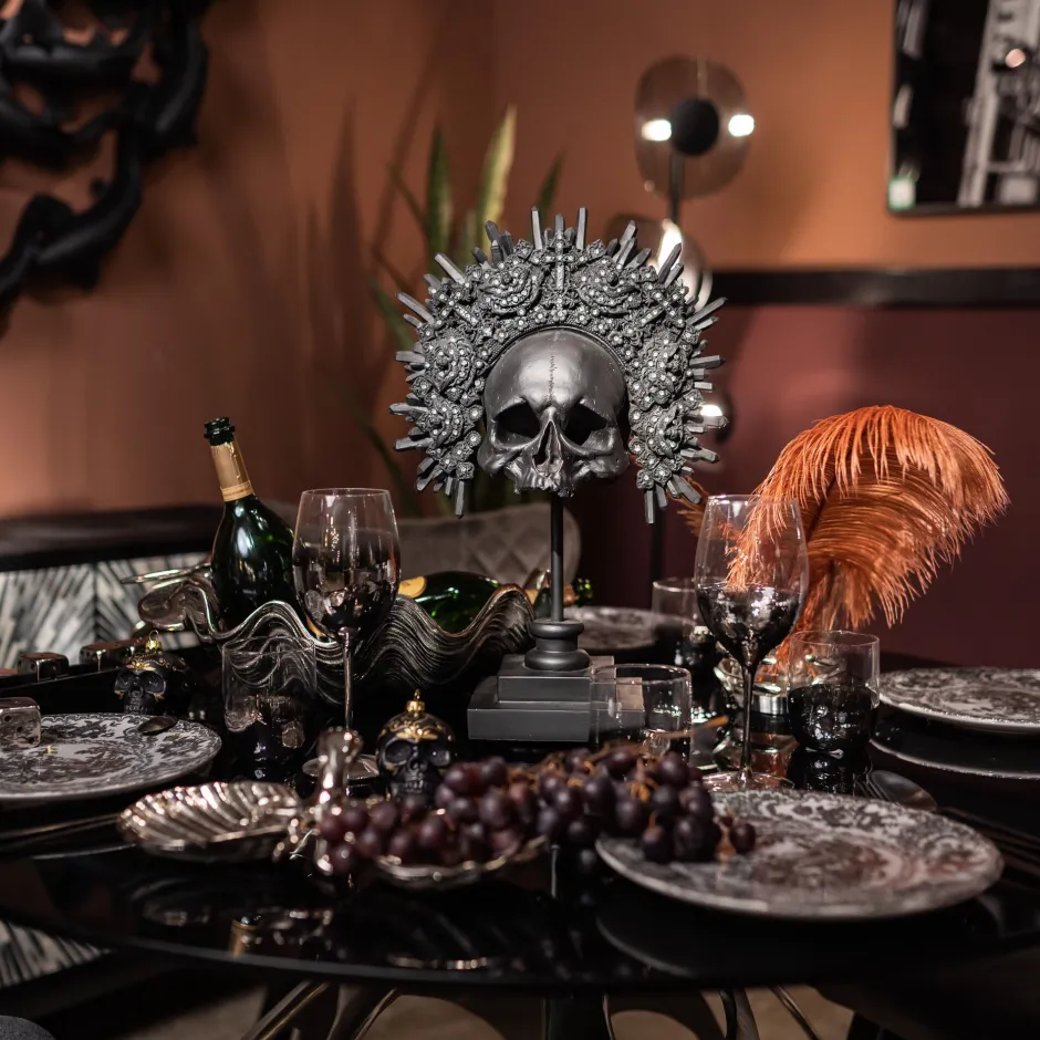 - Deko-Tipp vom Stylisten für alle, die es edgy mögen: Neben dem Deko-Schädel als Stilbruch einen bunten Blumenstrauß arrangieren
