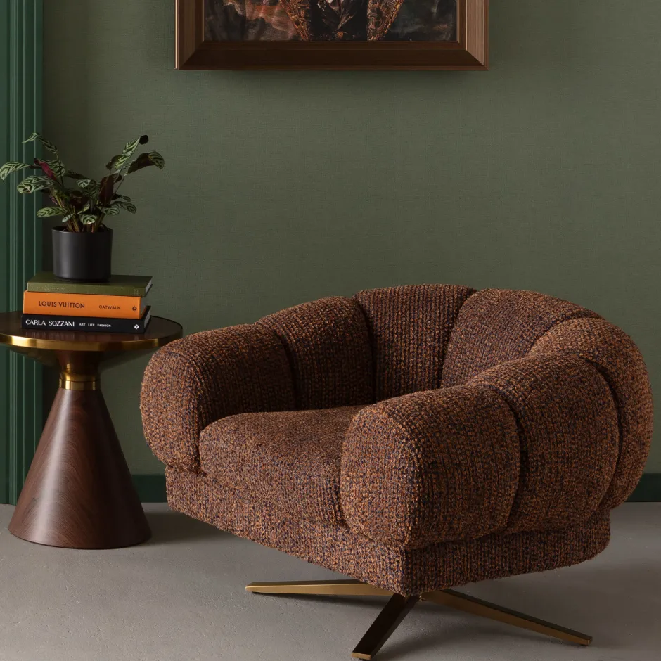 - Brauner Drehsessel im Retrostil, 68 x 95 x 88 Zentimeter (H/B/T)