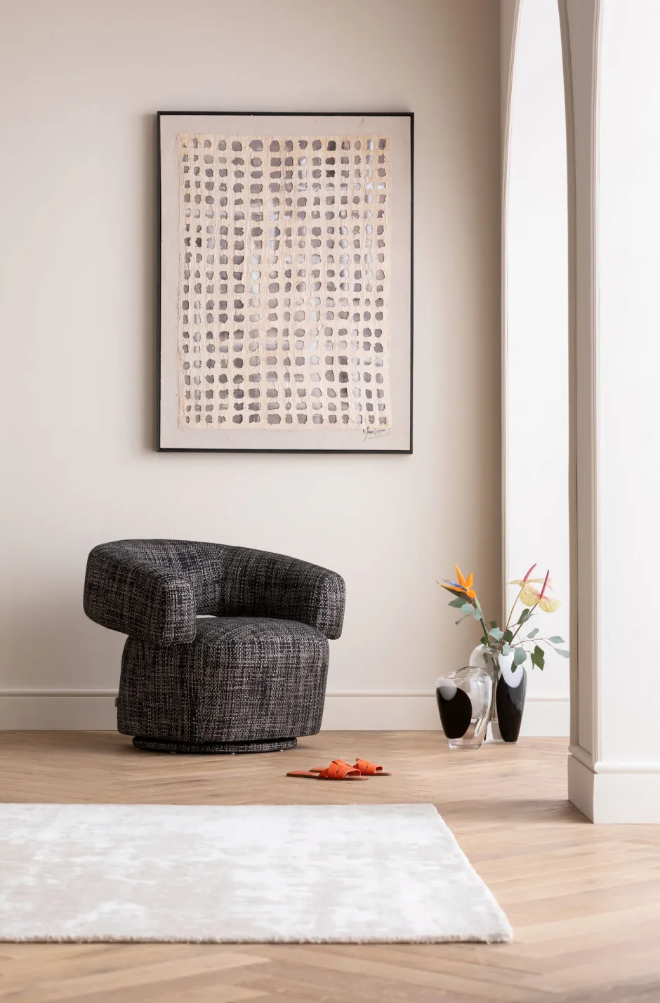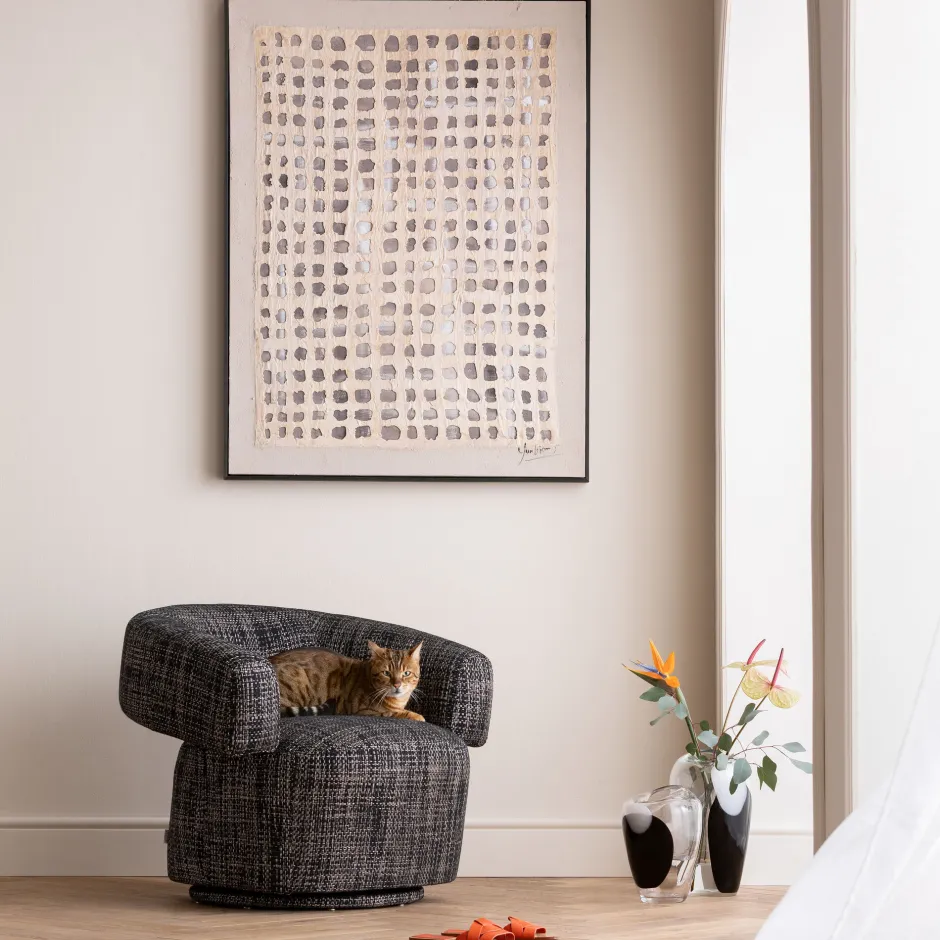- Moderner Lounge-Drehsessel mit Webstoff-Bezug, 70 x 86 x 76 Zentimeter (H/B/T)