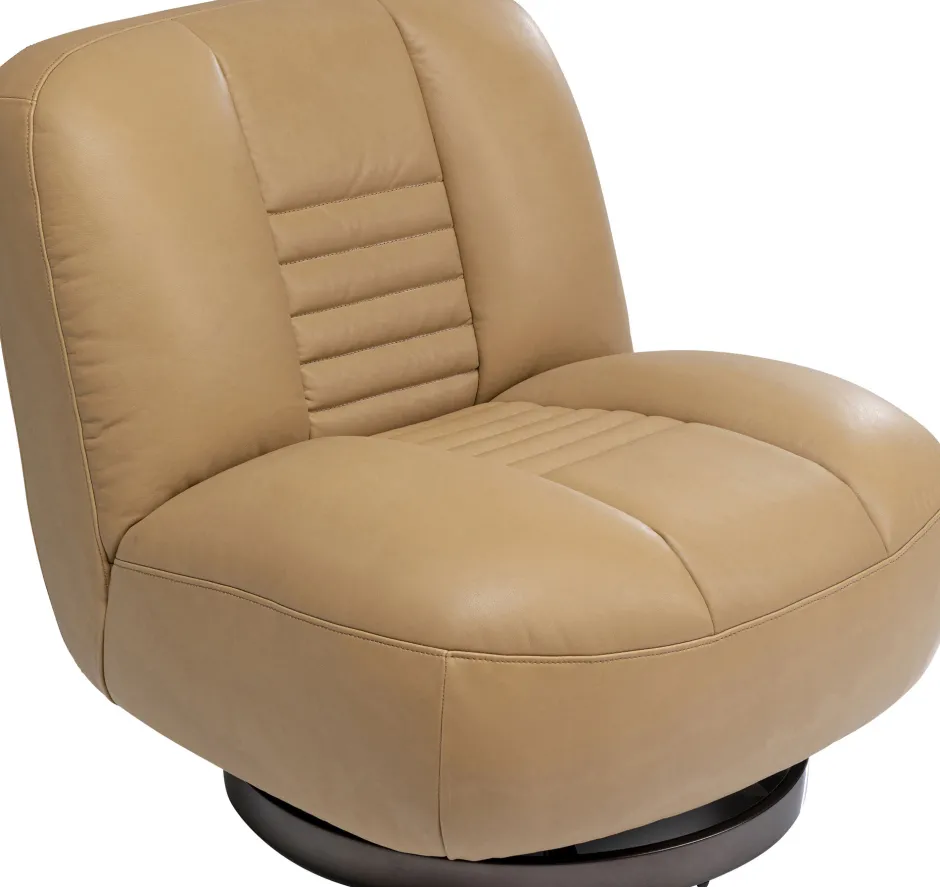 - Beigefarbener Ledersessel mit Drehfunktion, 77 x 79 x 86 Zentimeter (H/B/T)