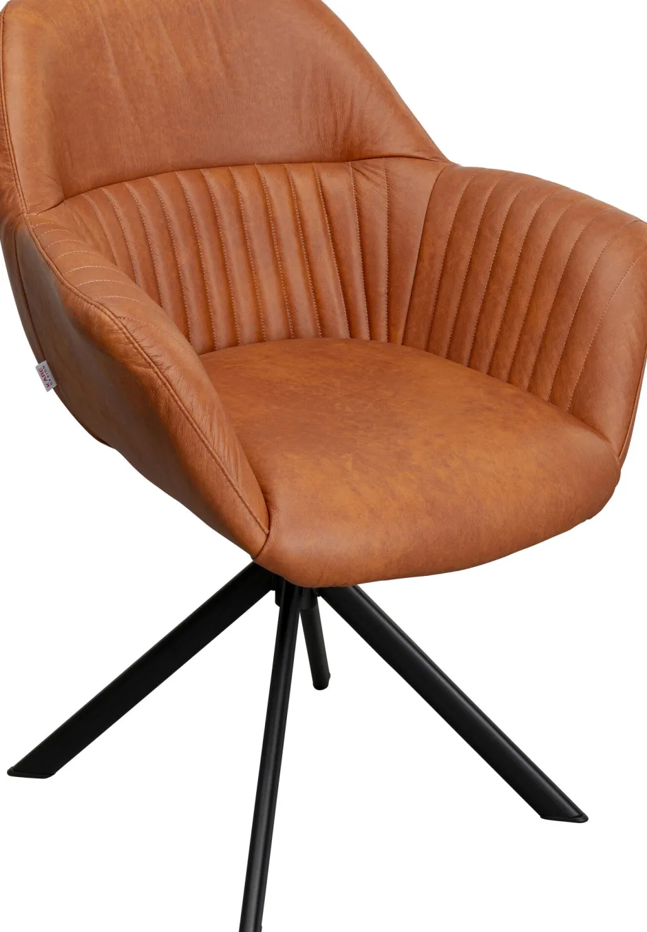 - Brauner Drehstuhl mit Armlehnen aus Leder, 89 x 65 x 67.5 Zentimeter (H/B/T)