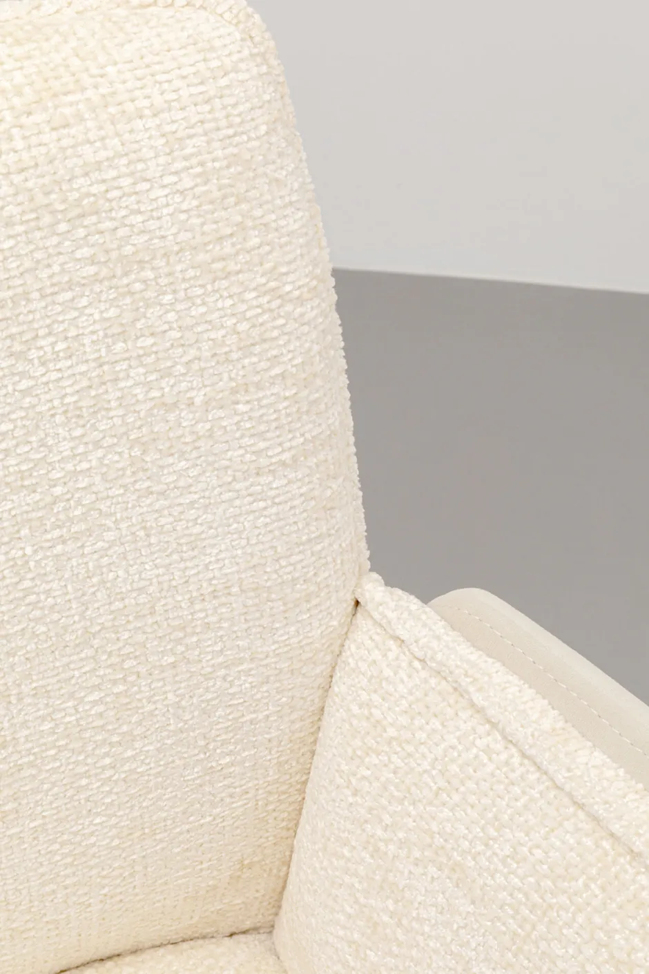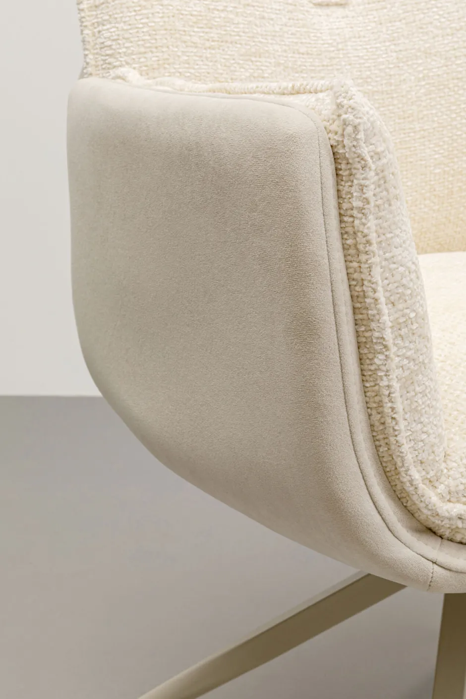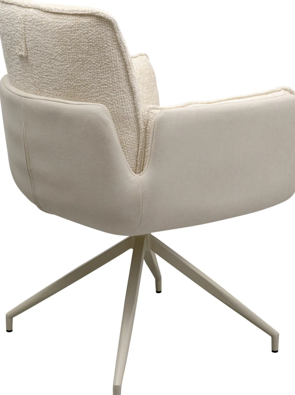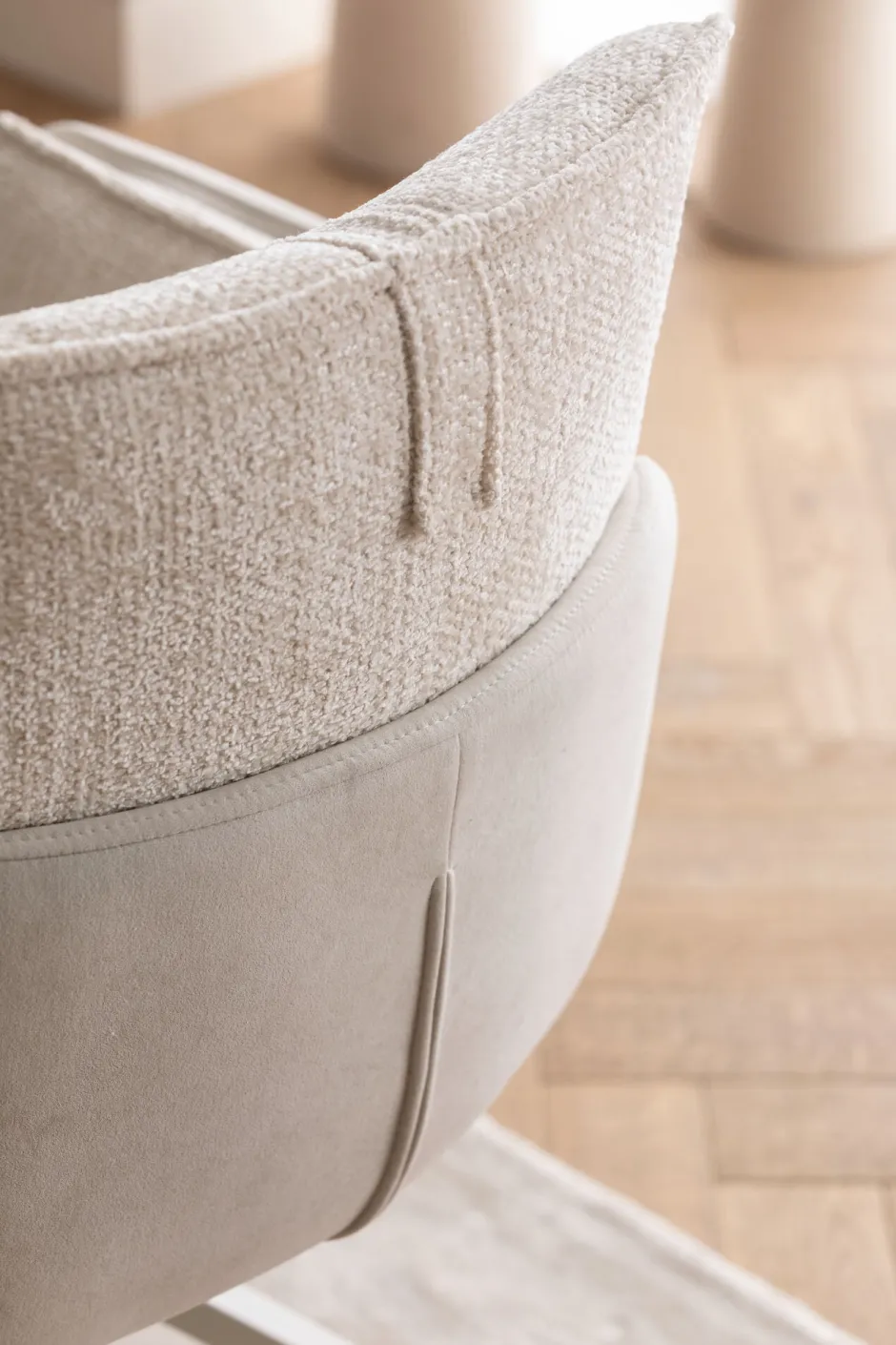 - Der Stuhl besticht durch den edlen Mix aus glattem Bezug und Bouclé-Optik, kombiniert mit abgerundeter Formgebung