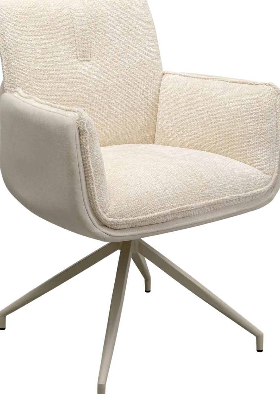- Gepolsterter Drehstuhl mit Armlehnen in Weiß und Beige, 85 x 62.5 x 63.5 Zentimeter (H/B/T)