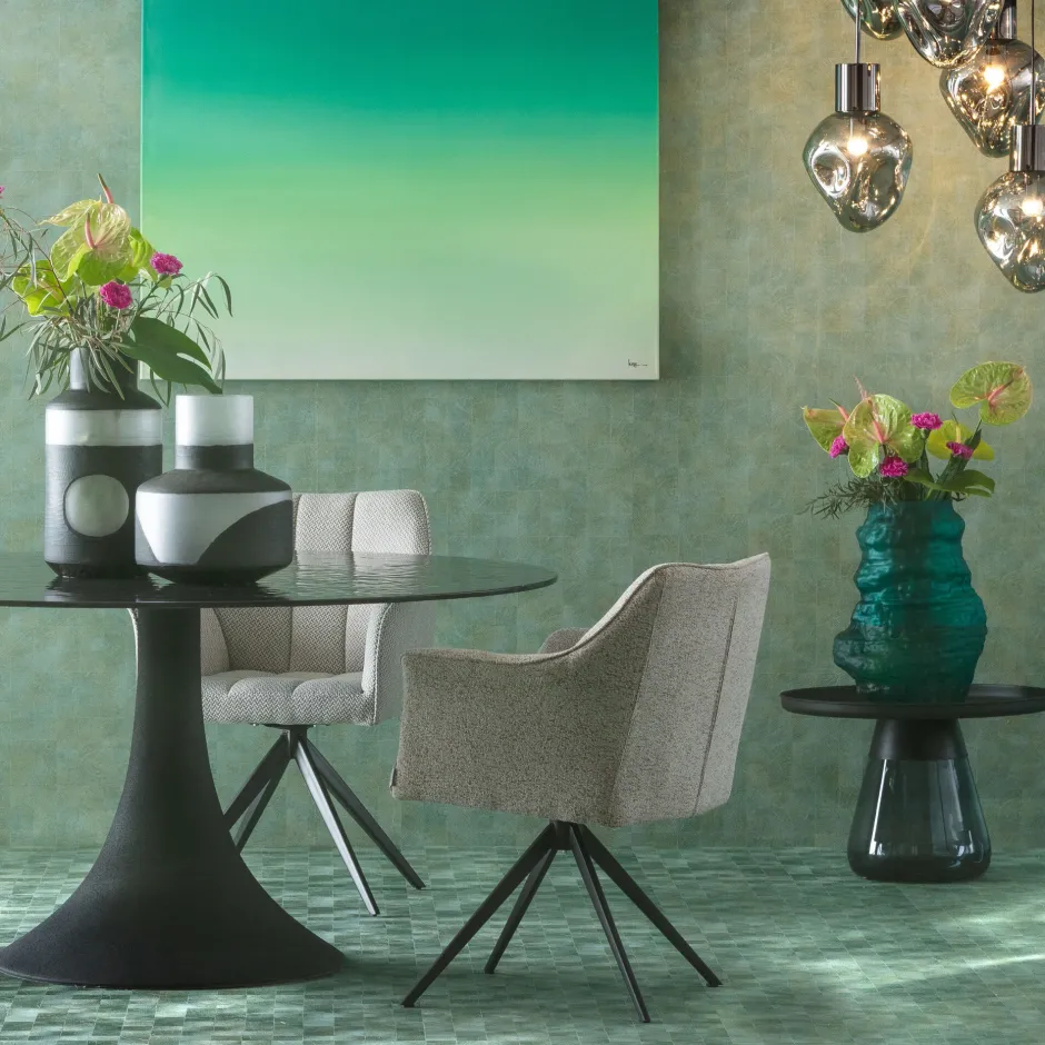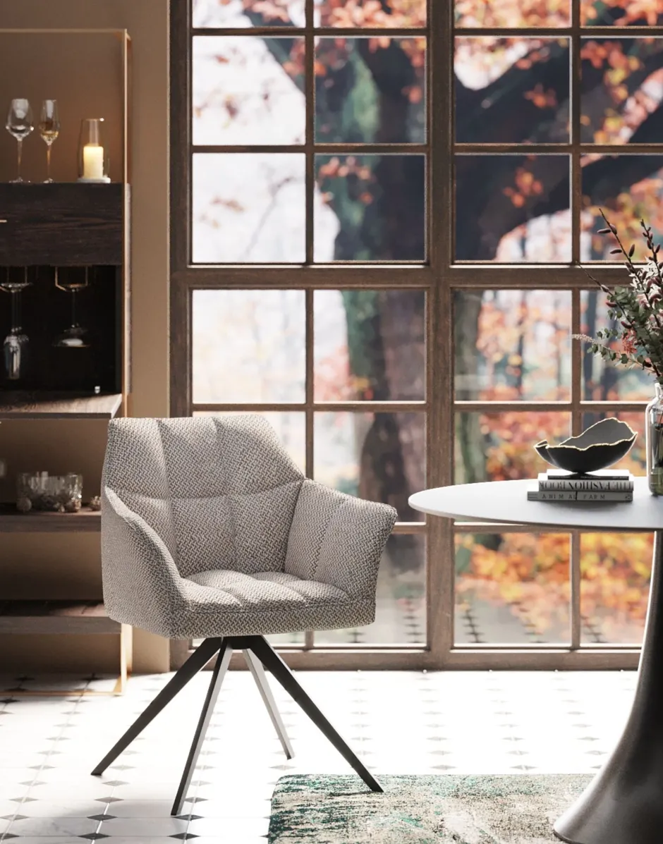 - Stabiles Vierbein-Drehgestell aus schwarz lackiertem Stahl, 360 Grad Drehfunktion