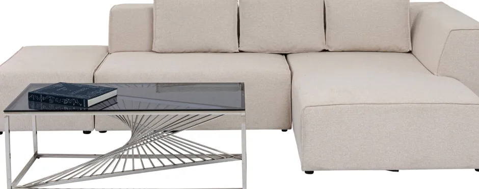- Drei Meter breites Ecksofa mit Ottomane rechts in Creme mit bequemer Polsterung im klassisch-modernen Stil