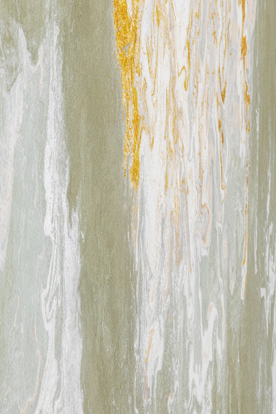 - Das fließende Motiv in zartem Grün mit goldenen Details schafft eine einladende, natürliche Atmosphäre