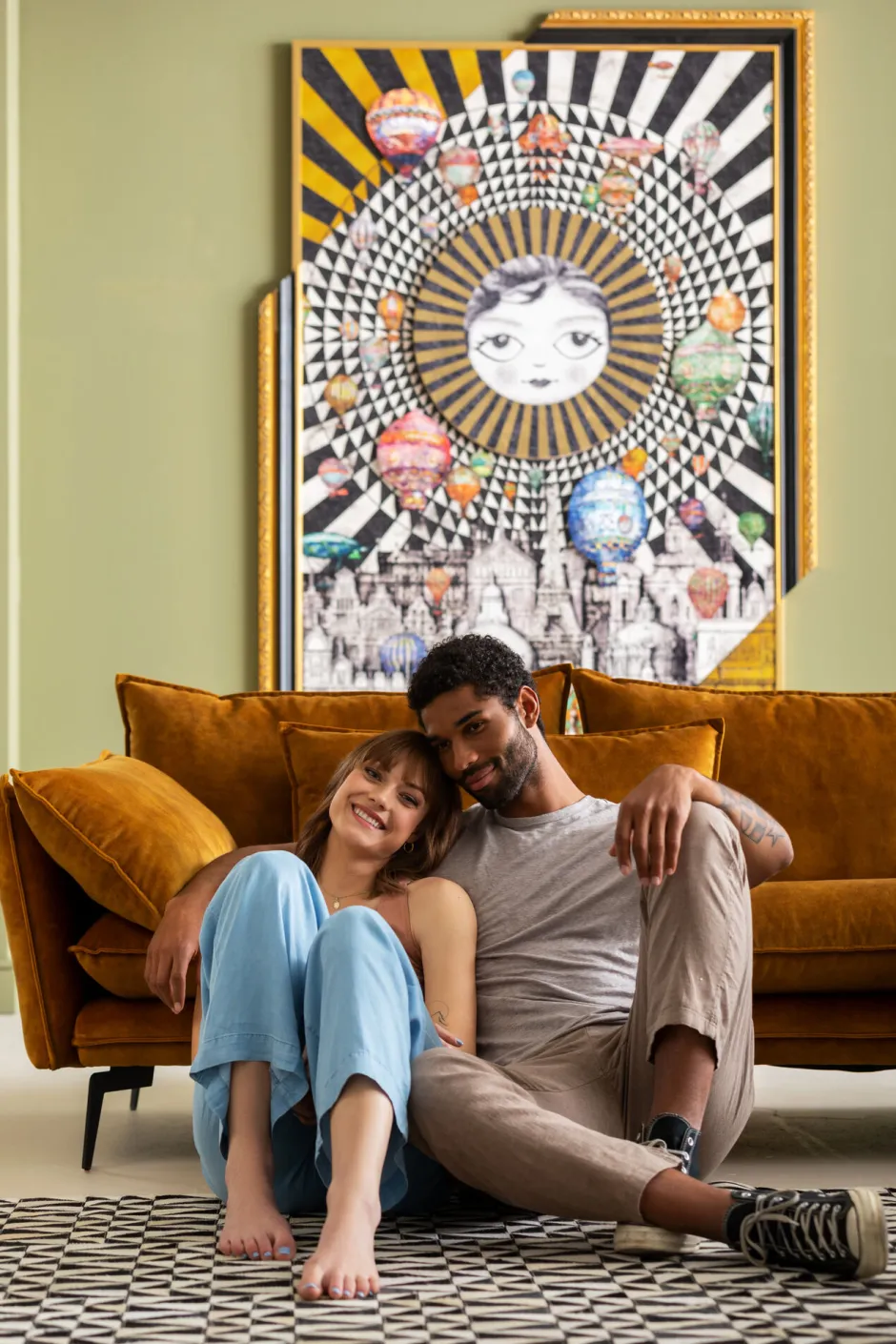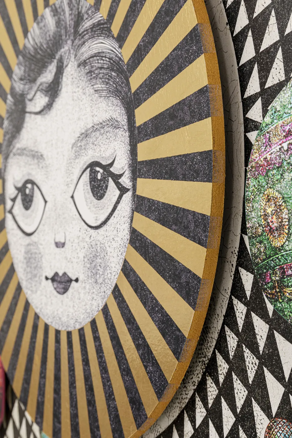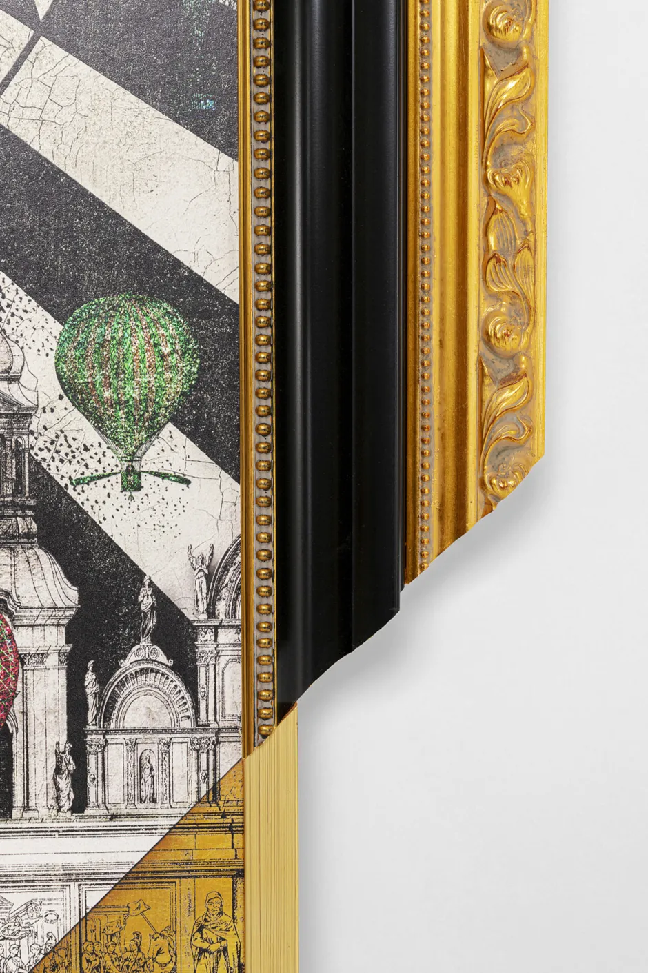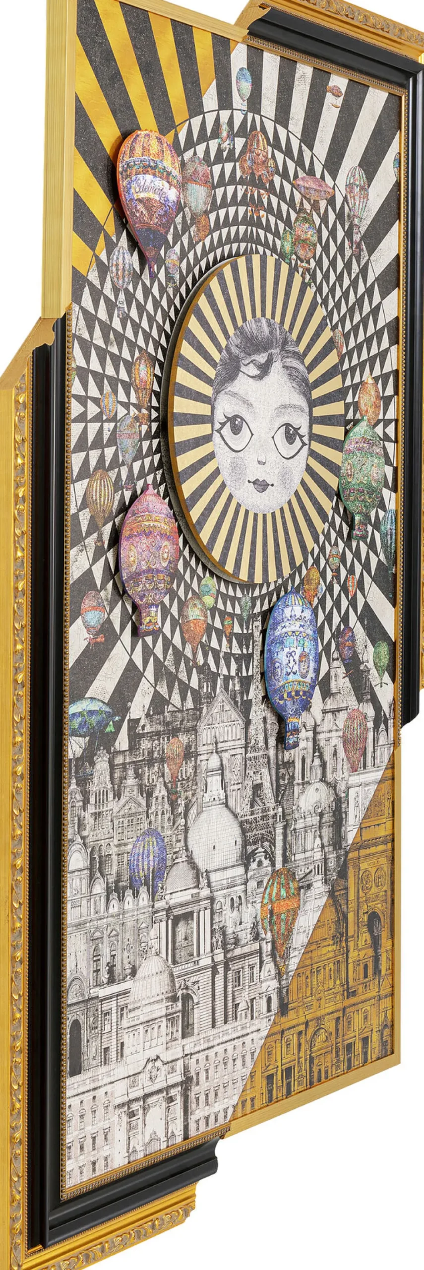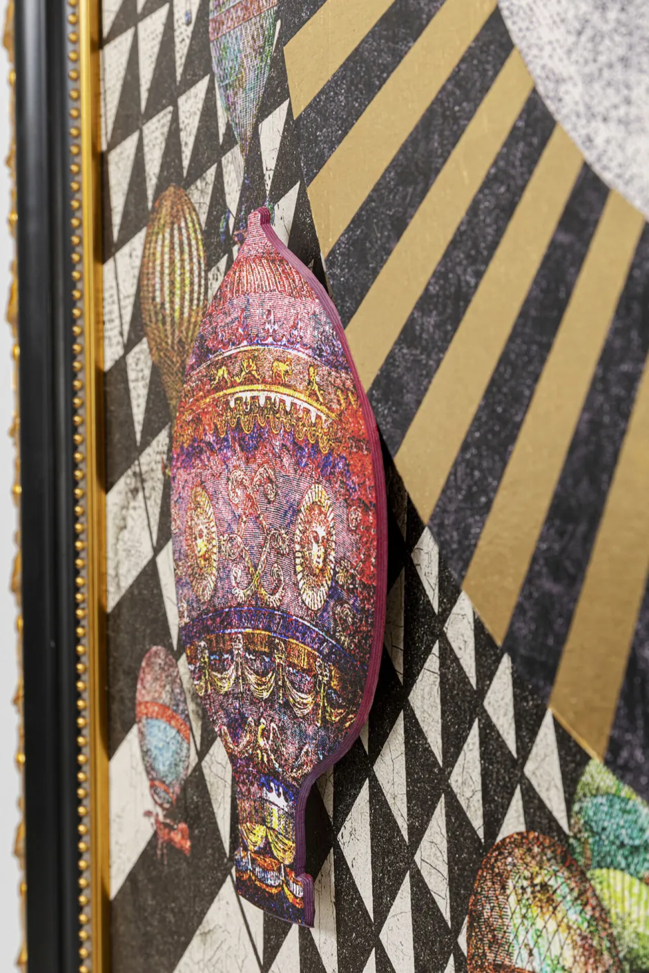 - Einige Elemente wie das Gesicht in der Mitte und die bunten Ballons sind auf das gerahmte Bild aufgesetzt und erzielen so einen interessanten dreidimensionalen Effekt