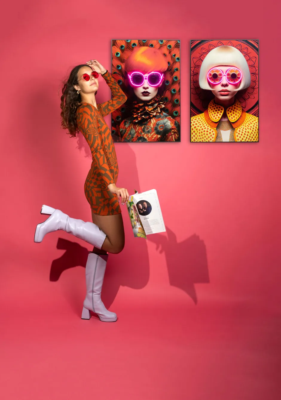 - Das stilvolle Motiv einer blonden Frau mit ausdrucksstarkem Blick und satte, warme Farben verkörpert moderne Eleganz