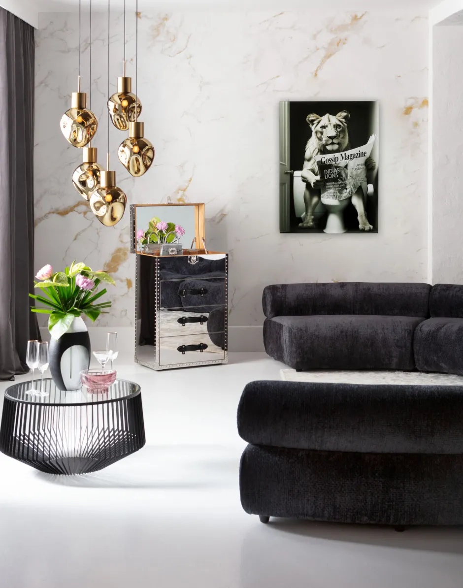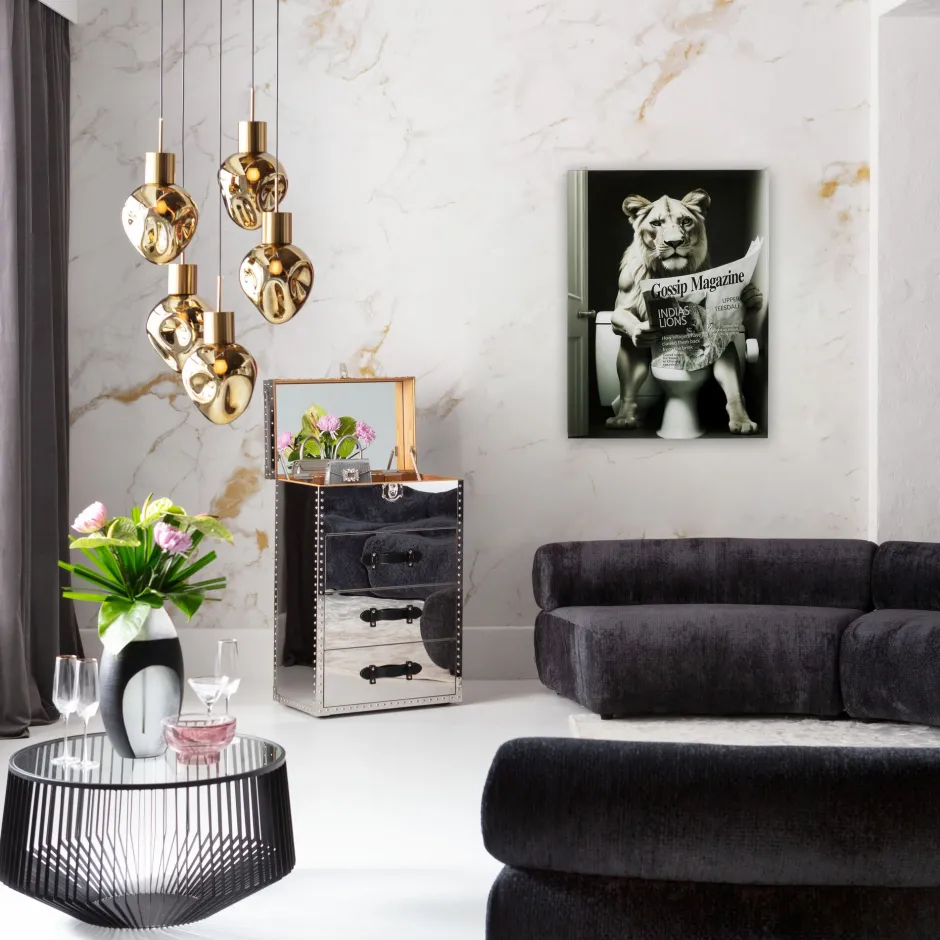 - Das Wandobjekt vereint Modernität und Luxus auf humorvolle Weise