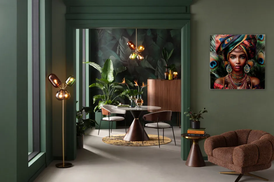 Glasbild Muse Peacock 100x100cm KARE – Spaß am Wohnen Material: (Bild: Polypropylen, Front: 4 mm Glas Sicherheitsglas E…