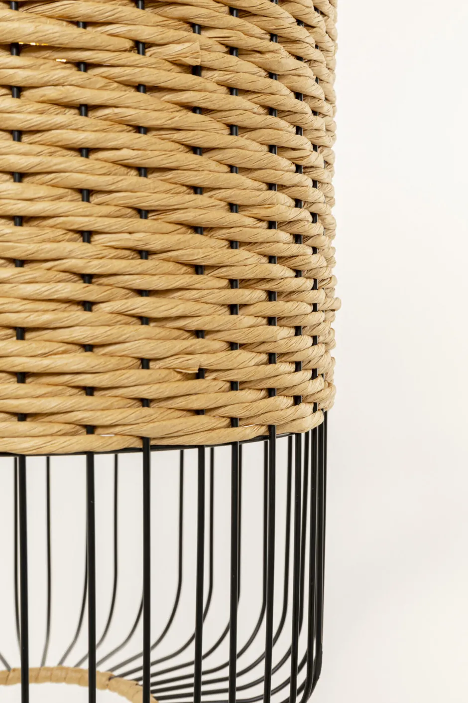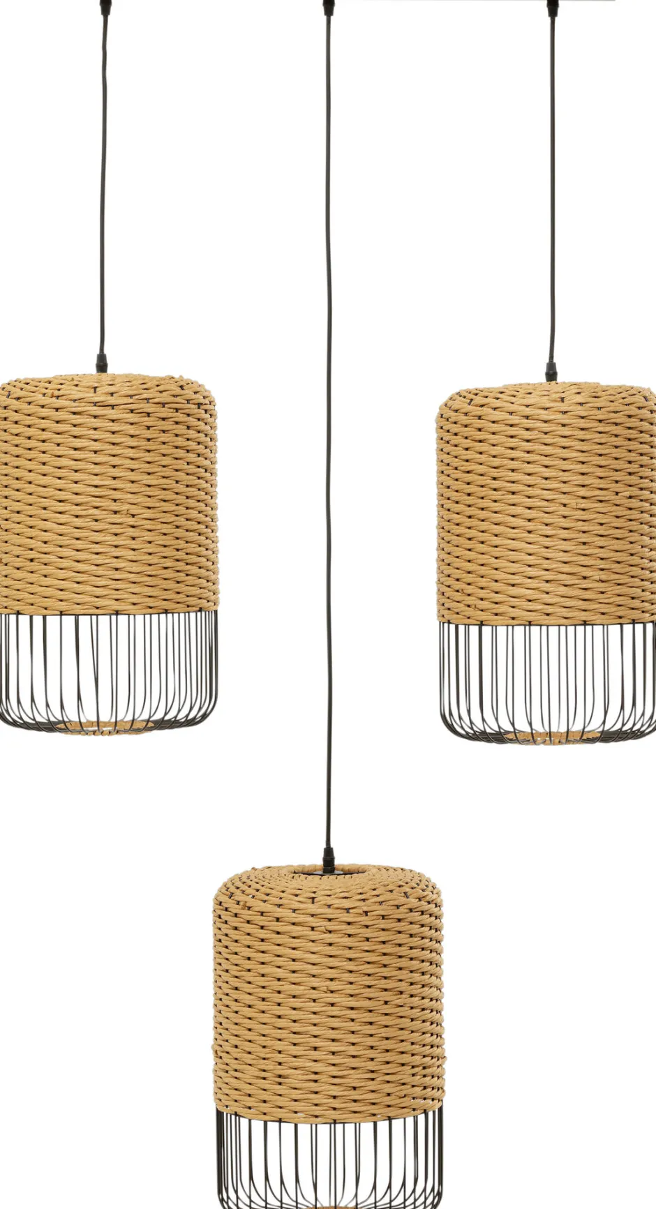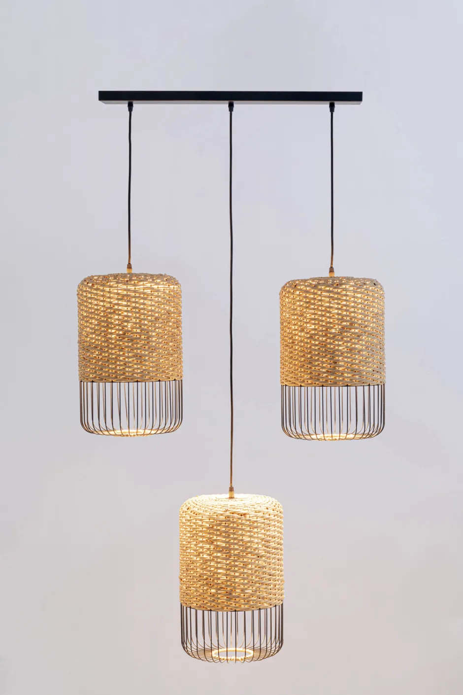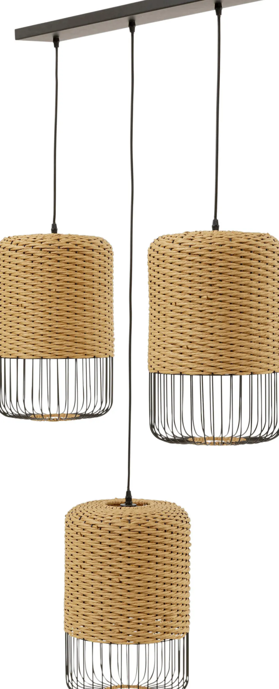 - Große Hängeleuchte mit drei Lampenschirmen aus Rattan, 142 x 81 x 27 Zentimeter (H/B/T)