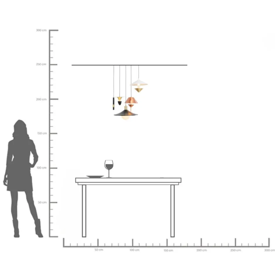 - Moderne Hängelampe aus Metall mit mehreren Lampenschirmen, 150 x 50 x 50 Zentimeter (H/B/T)