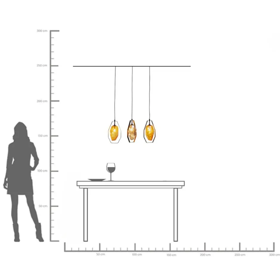 - Drei exklusive, gefärbte Glasschirme in Form eines Rohdiamanten verbreiten dezenten Glamour