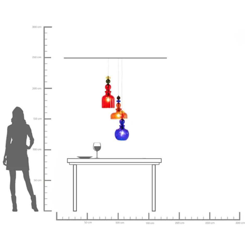 - Bunte Hängeleuchte aus Metall und Glas, 140 x 48 x 48 Zentimeter (H/B/T)