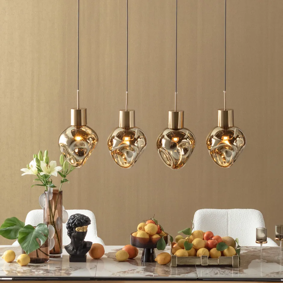 - Die goldfarbenen Lampenfassungen und der Decken-Baldachin sind aus titanbeschichtetem Stahl gefertigt