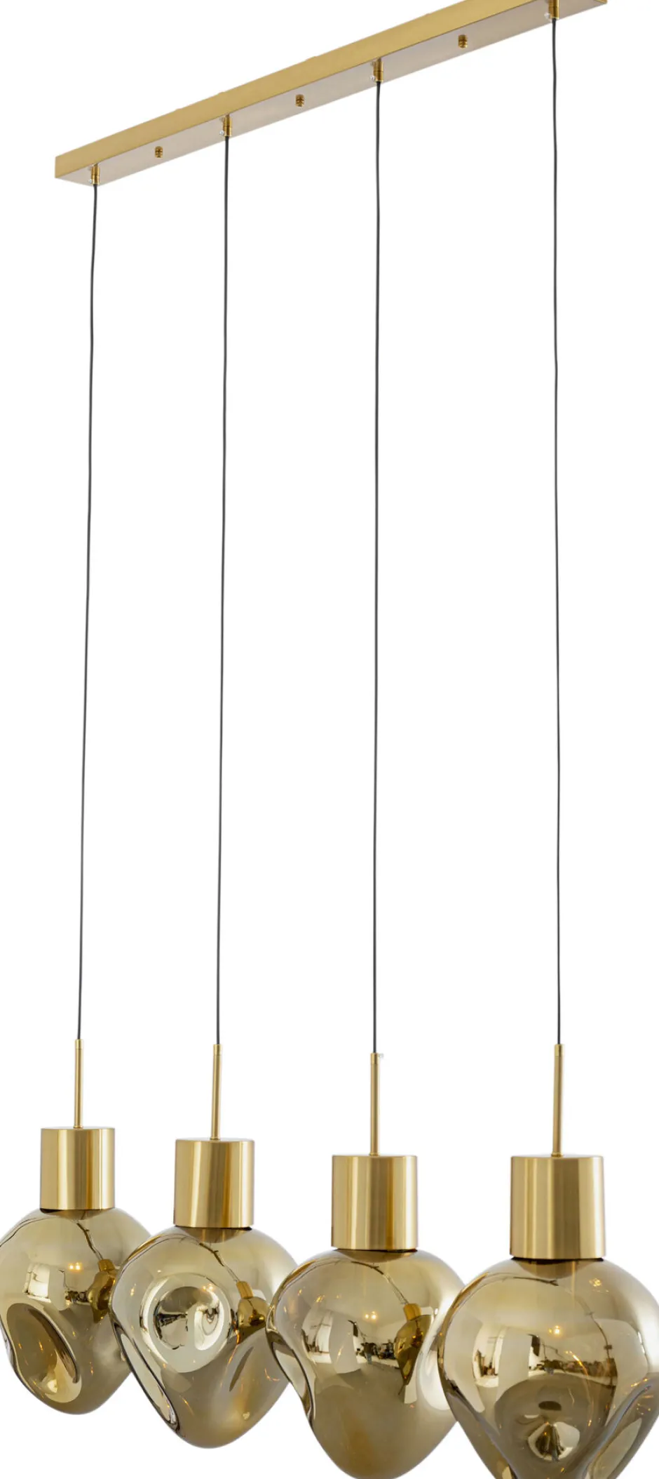 - Breite, goldfarbene Hängelampe mit vier Schirmen, 160 x 110 x 25 Zentimeter (H/B/T)