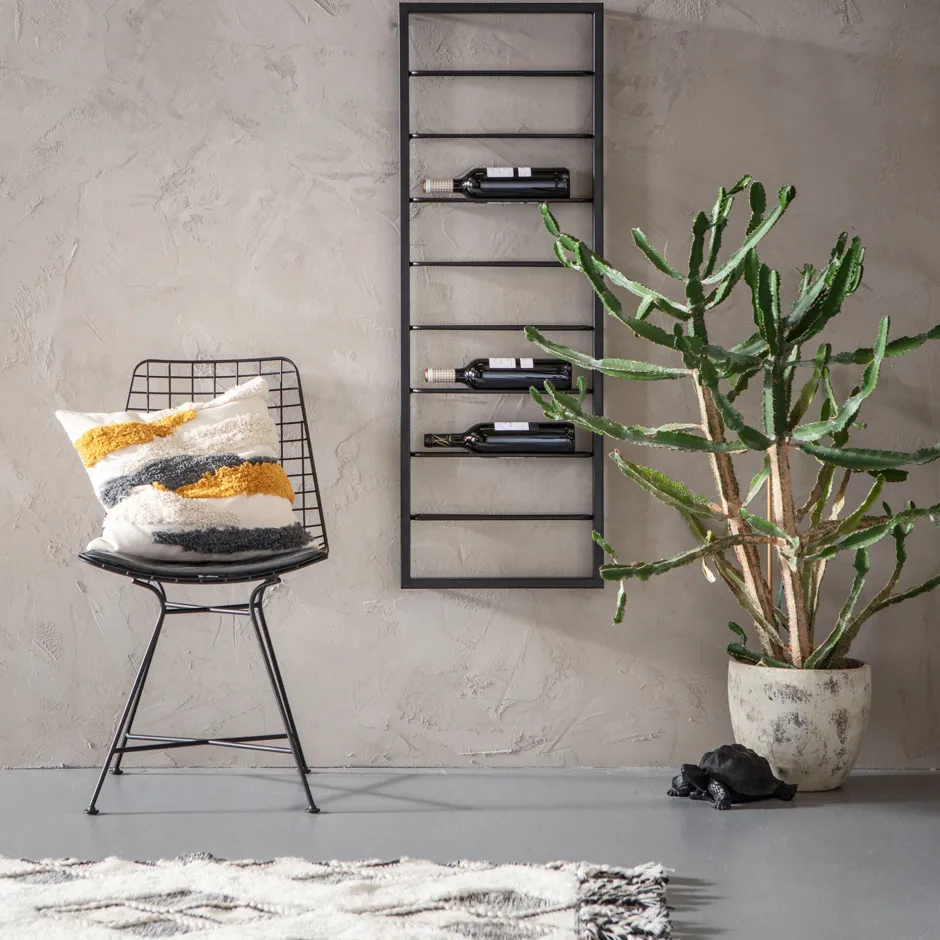 - Puristisches Weinregal in Schwarz für die Wand aus pulverbeschichtetem Stahl mit grafischen Linien