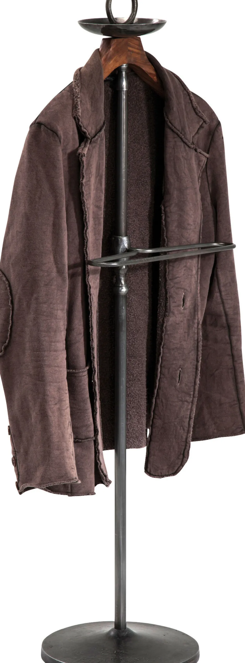- Mit solidem breiten Kleiderbügel aus lackiertem Mangoholz und runden Hosenstange