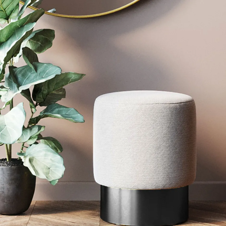 - Hocker in hellem Beige mit Sockel in Schwarz, 44 x 36.5 x 36.5 Zentimeter (H/B/T)