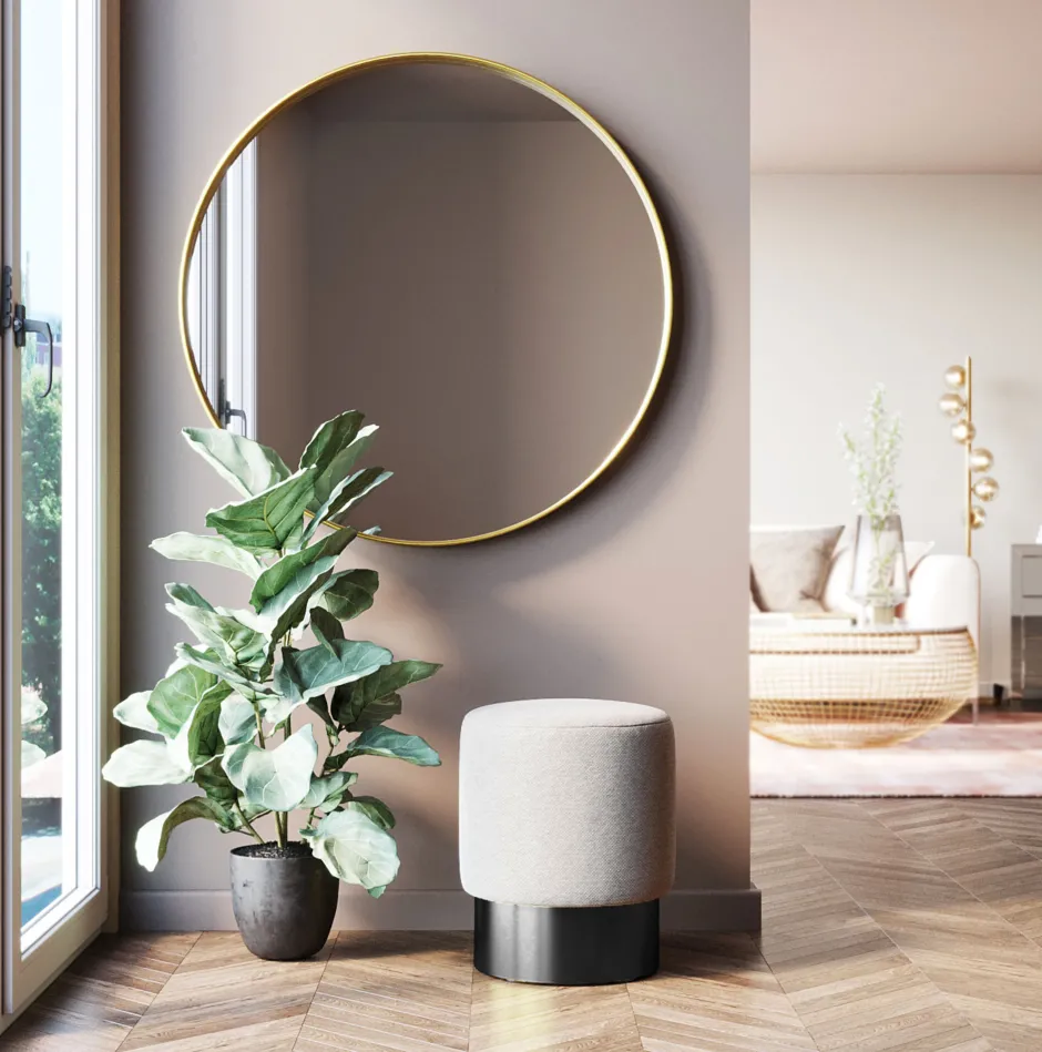 - Ein hübscher Pouf im Flur verbreitet Wohnlichkeit und ist eine platzsparende Sitzgelegenheit