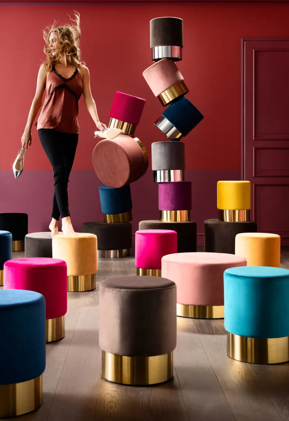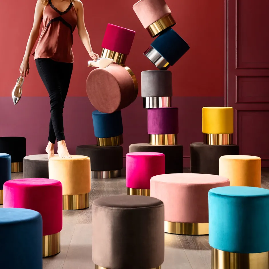 - Die Hocker Cherry gibt es in vielen Farben, verschiedenen Größen und mit chromfarbenem Sockel