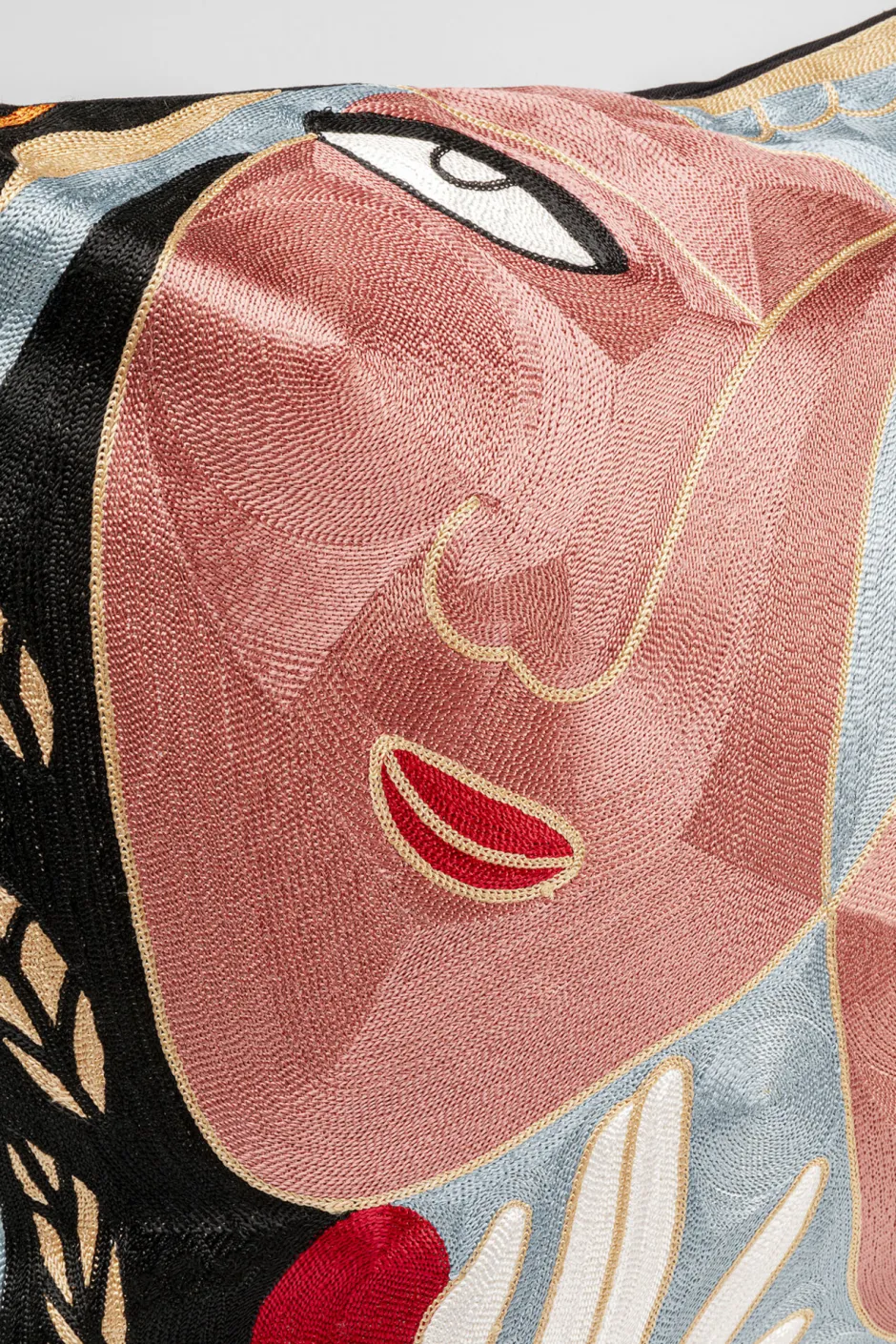 - Buntes Deko-Kissen mit abstraktem Gesichts-Motiv, 50 x 50 x 14 Zentimeter (H/B/T)