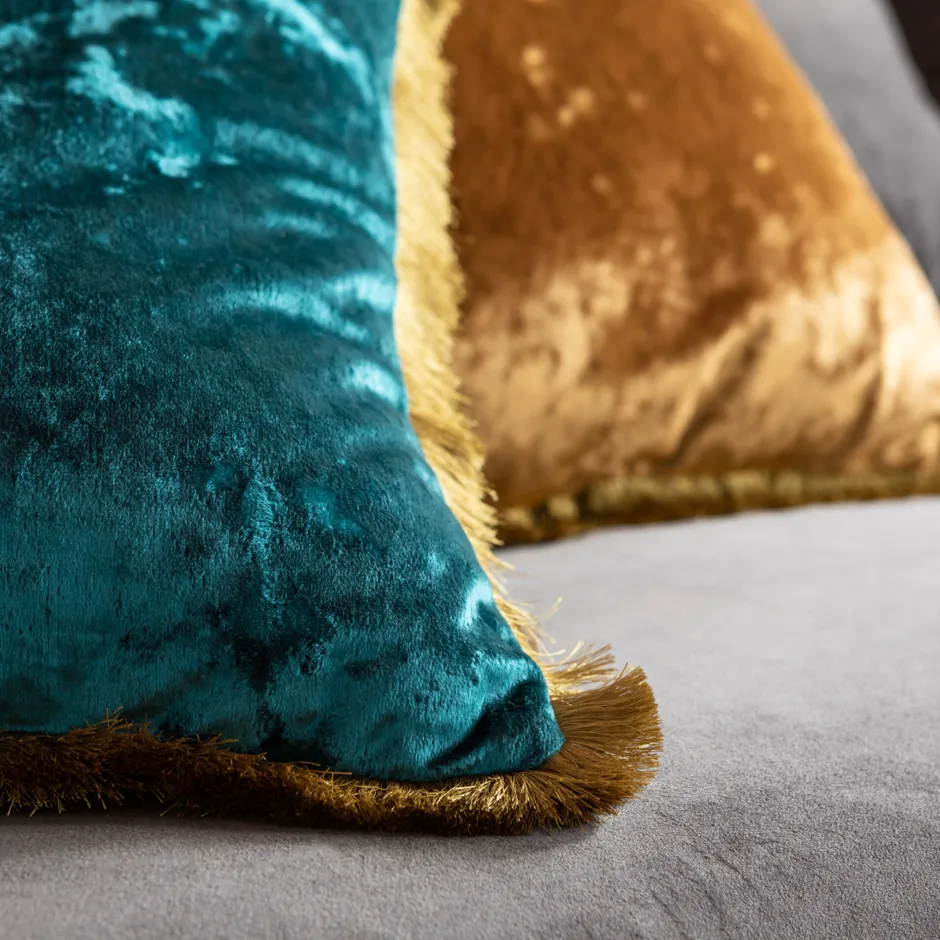 - Eine extravagante Fransenkante ziert das samtweiche Kissen in trendigem Blaugrün
