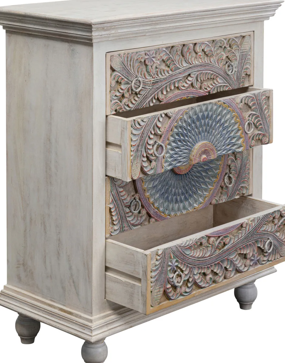 - Kleine Kommode mit Korpus und Fronten aus Mango-Massivholz, Grundfarbe Weiß, 110 x 90 x 45 Zentimeter (H/B/T)