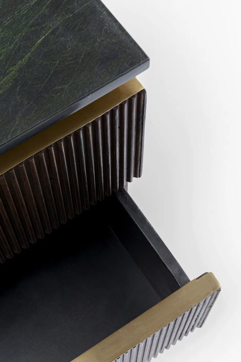 - Kleine Holzkommode in Braun mit Messingdetails Platte aus Mineral-Marmor, 58 x 50.5 x 40.5 cm (H/B/T)
