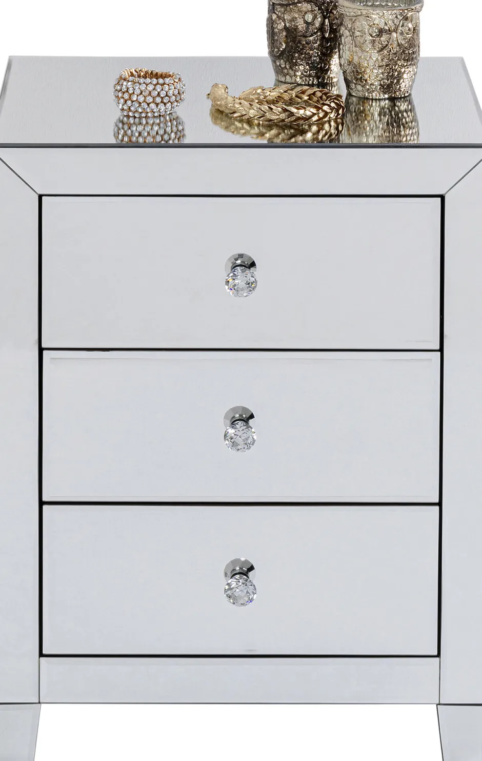 - Kleine Spiegelkommode aus der Kollektion Luxury mit drei Schubladen und edlen Griffen aus Glas – die tägliche Ration Luxus!