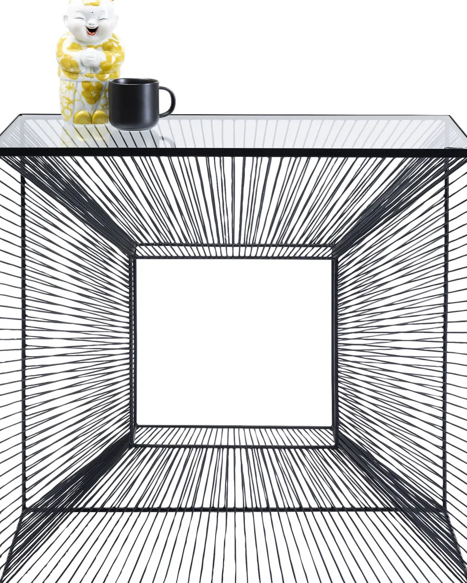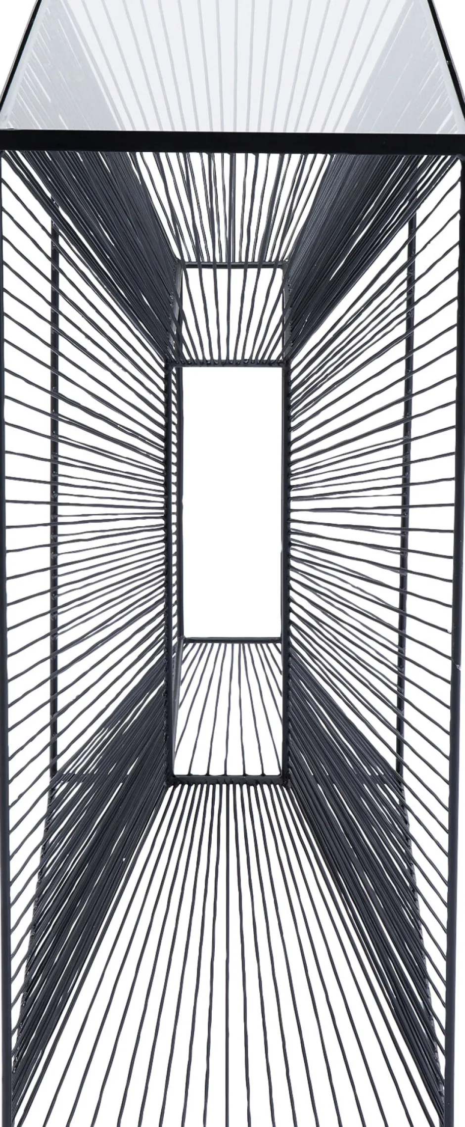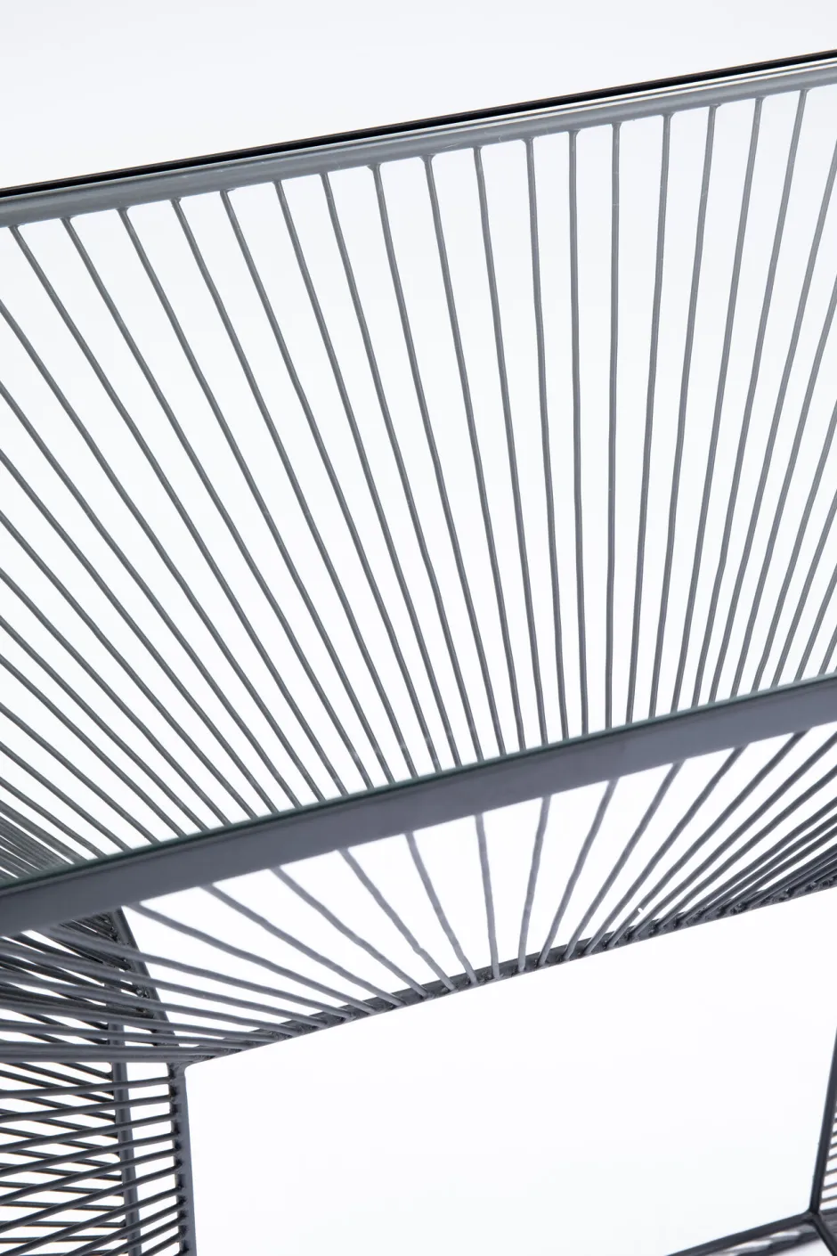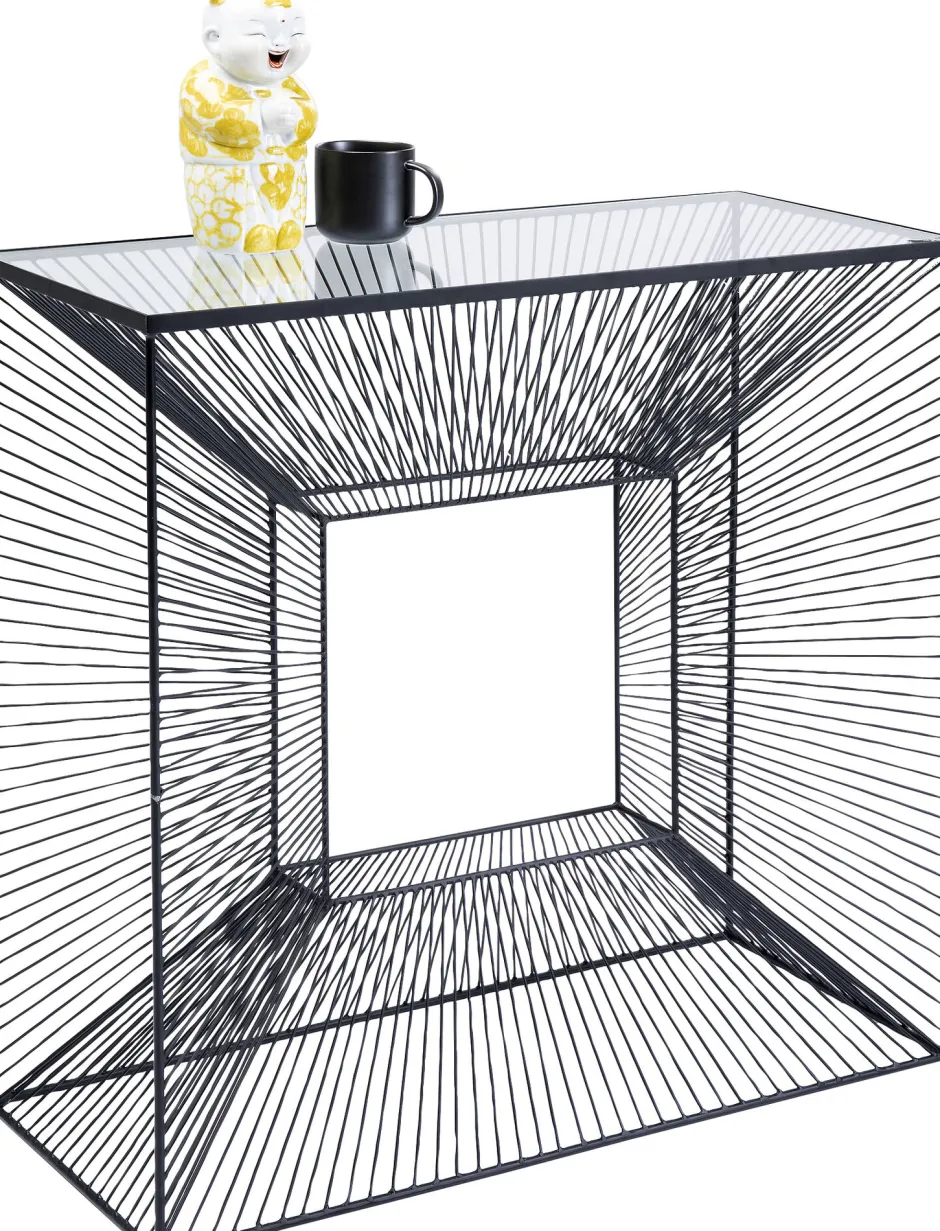 - Konsole mit Glasplatte, die durch ihr grafisches Stahldraht-Gestell wie ein modernes Kunstobjekt wirkt